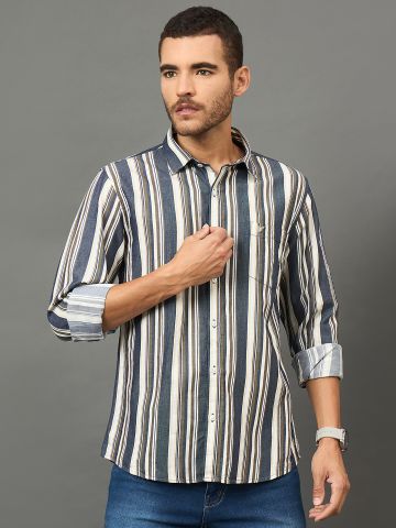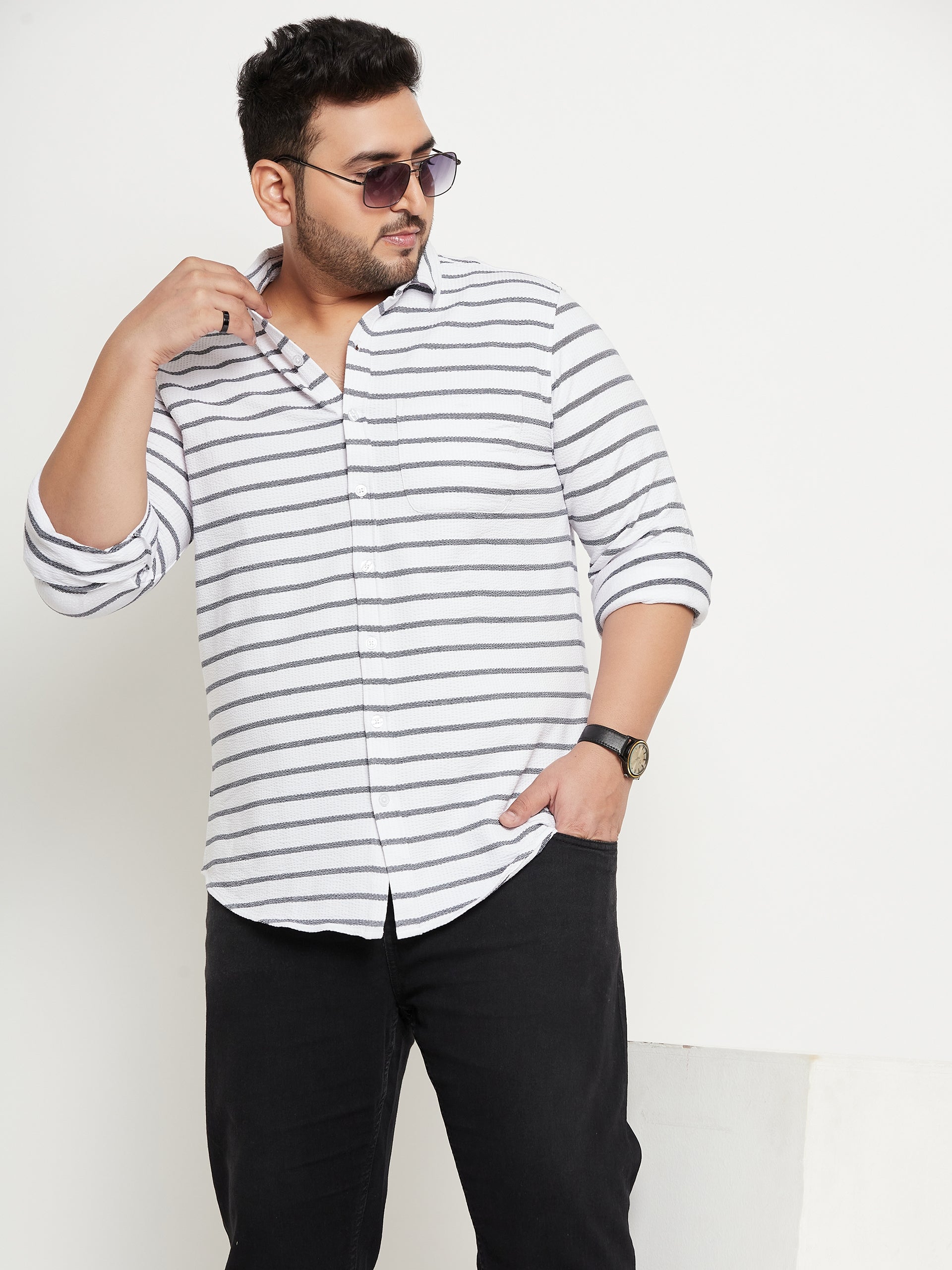 White Striped Full Sleeve Round Neck Plus Size Sweatshirt 5688
