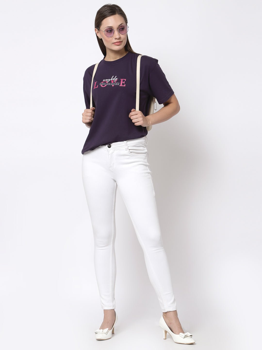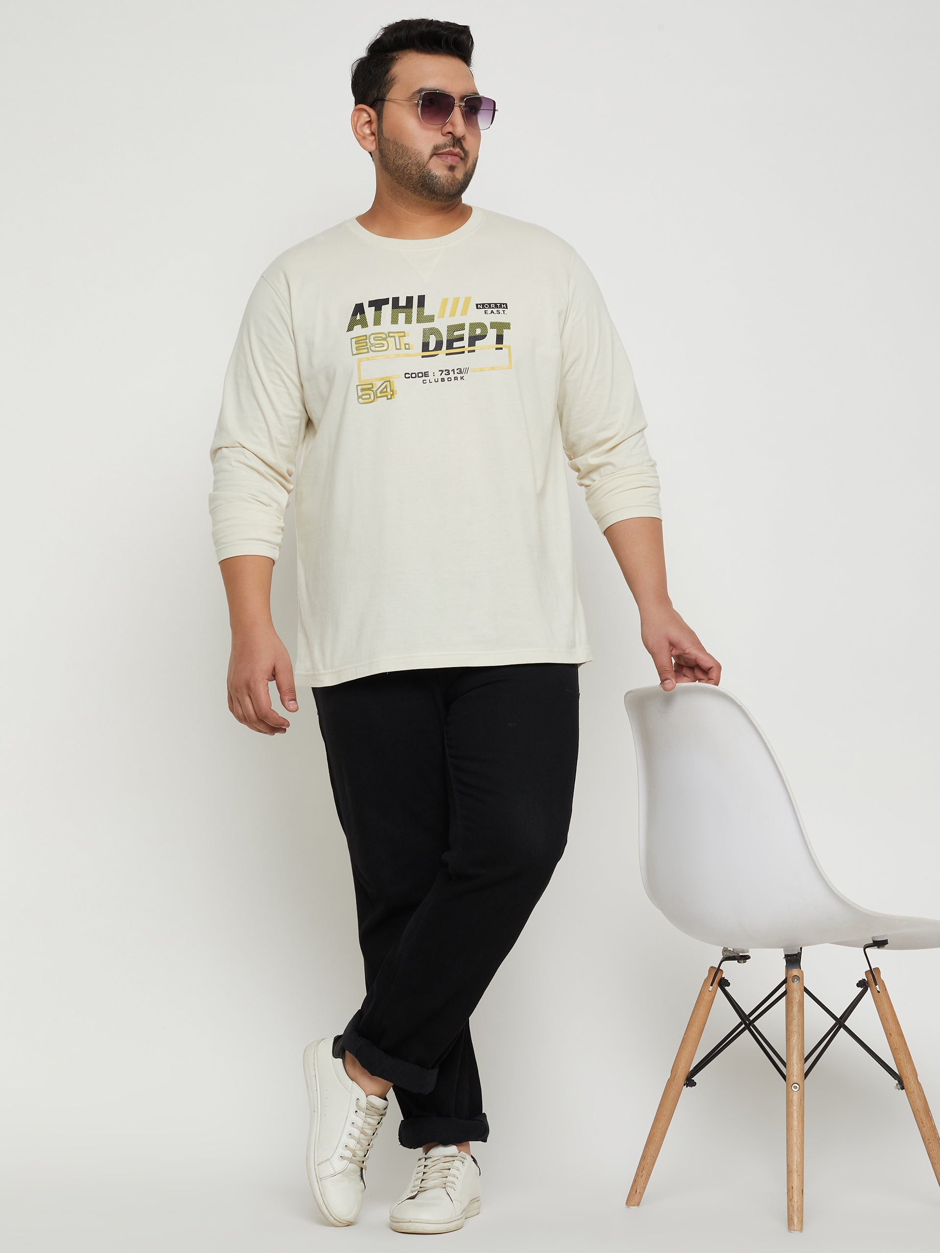 Off White Printed Round Neck Plus Size T-Shirt 8021