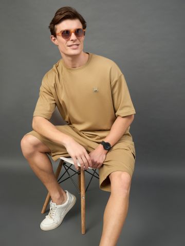 Men Solid Green Tea Half Sleeve Round Neck T Shirt