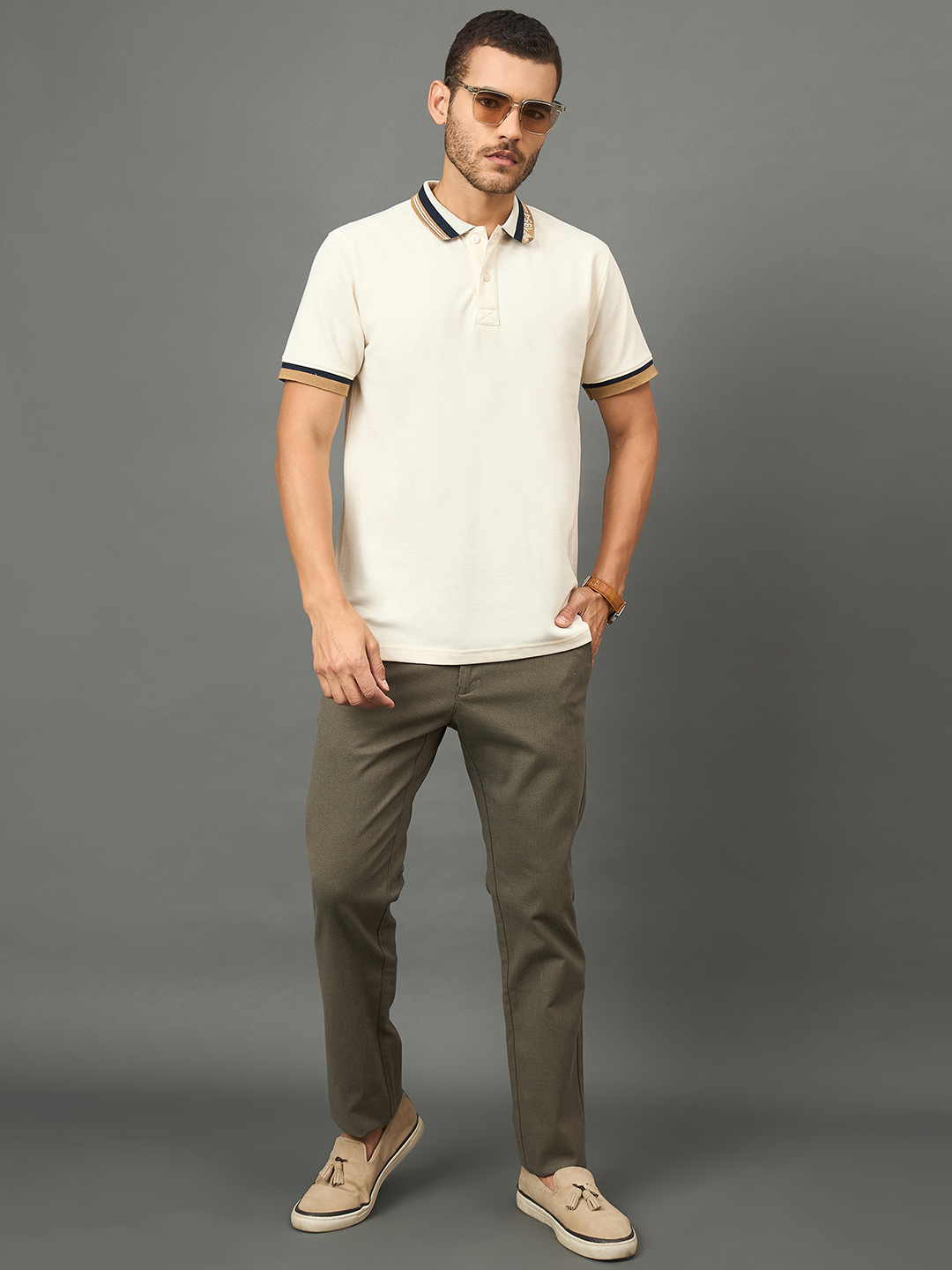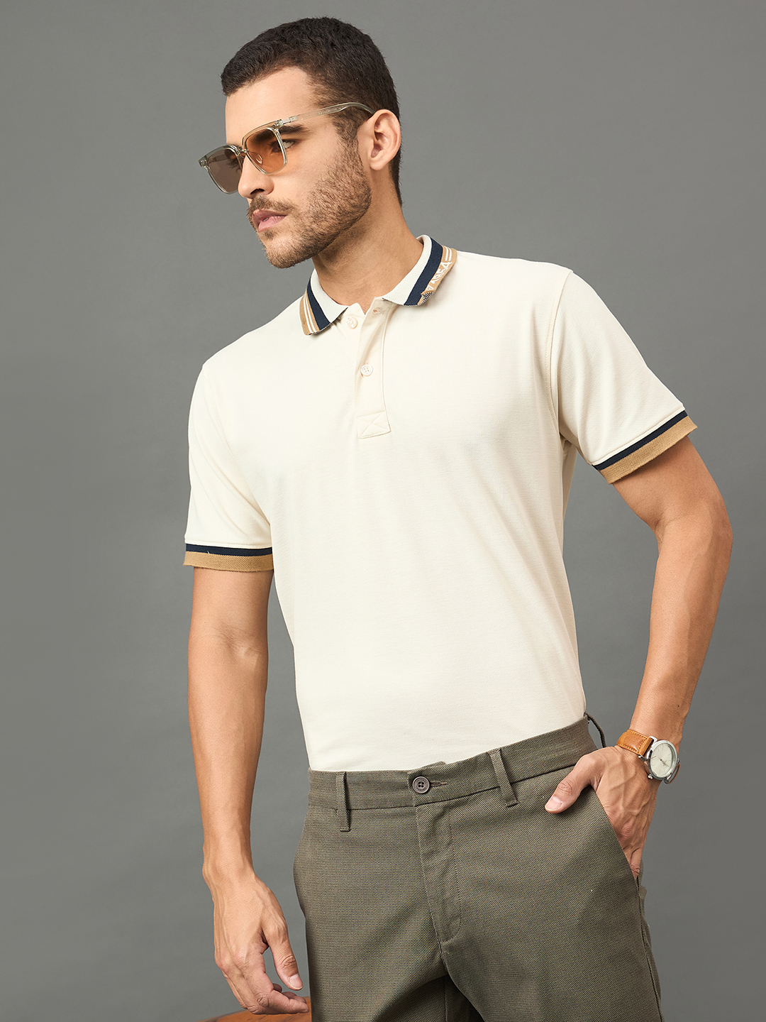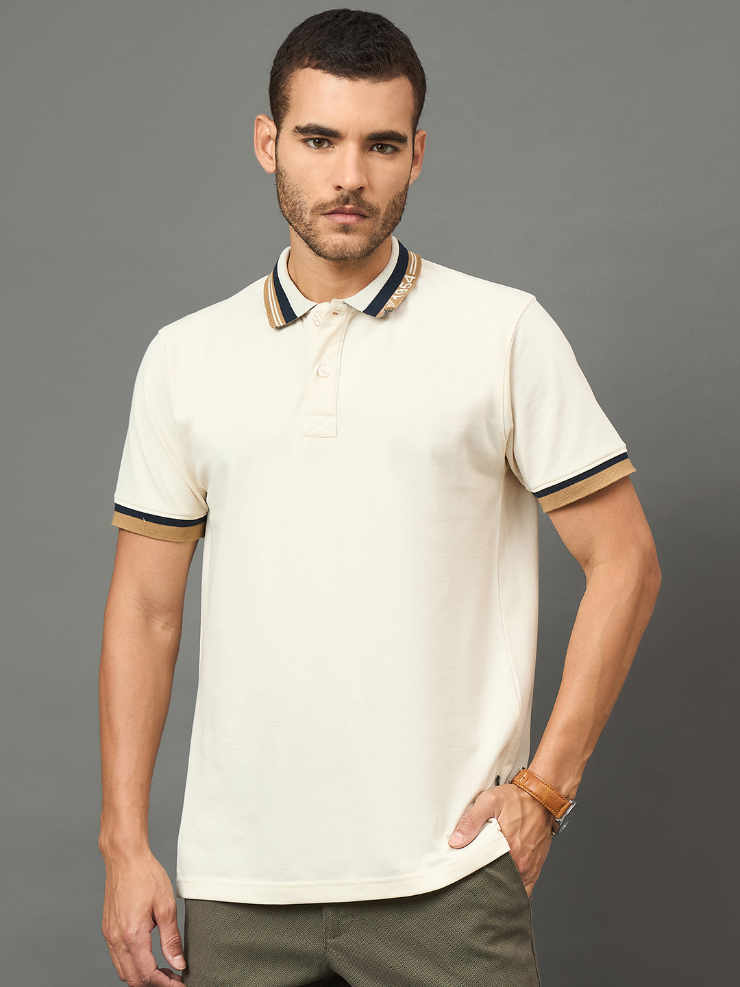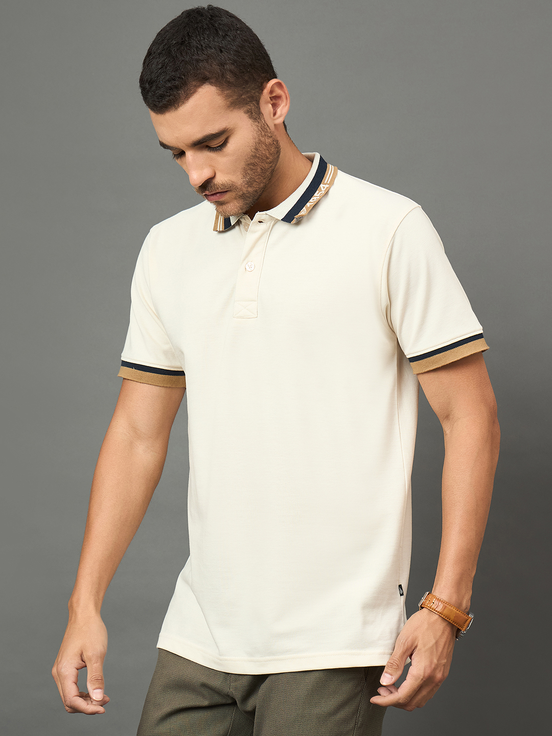 Fine Textured Beige Polo T Shirt