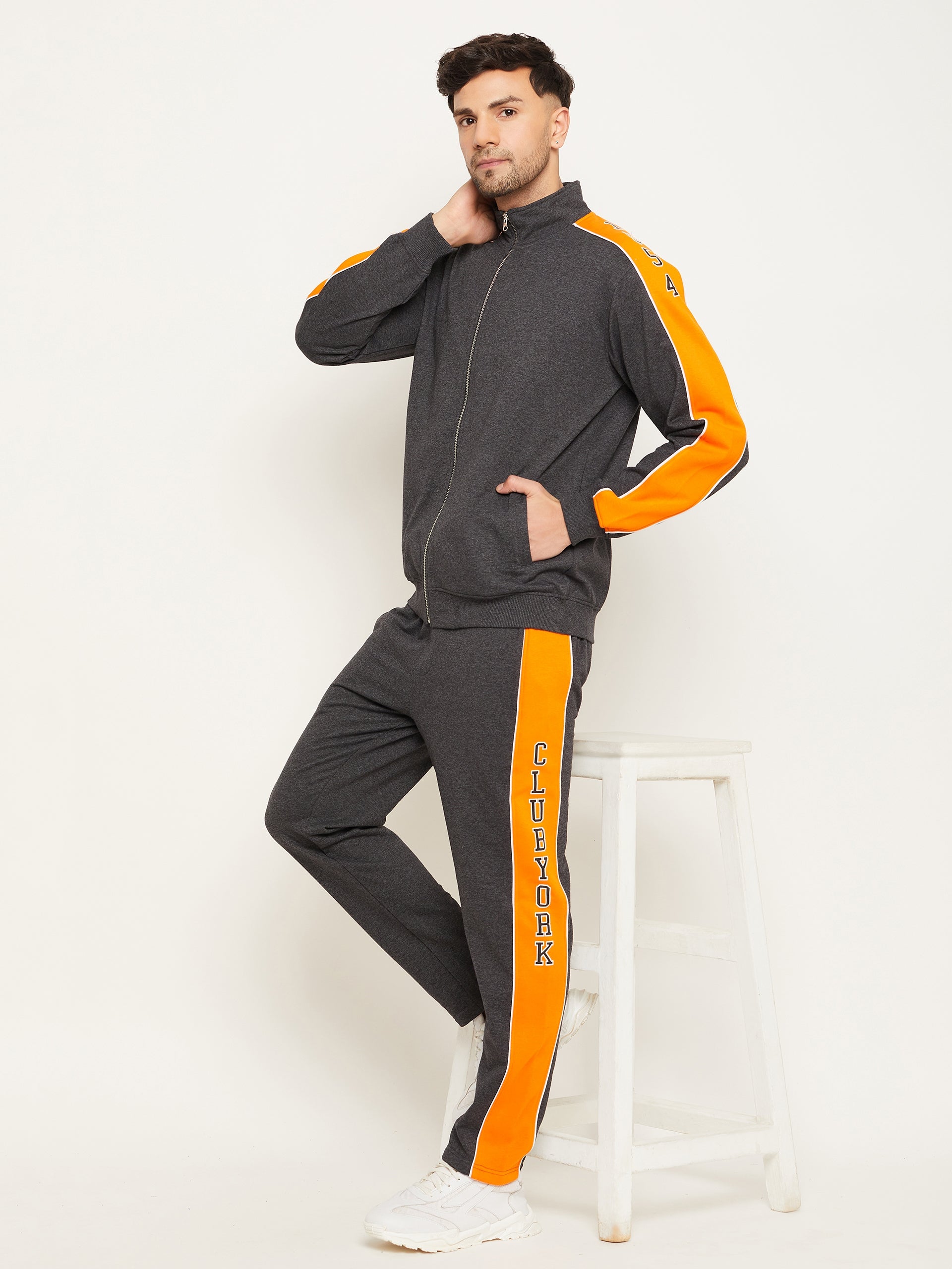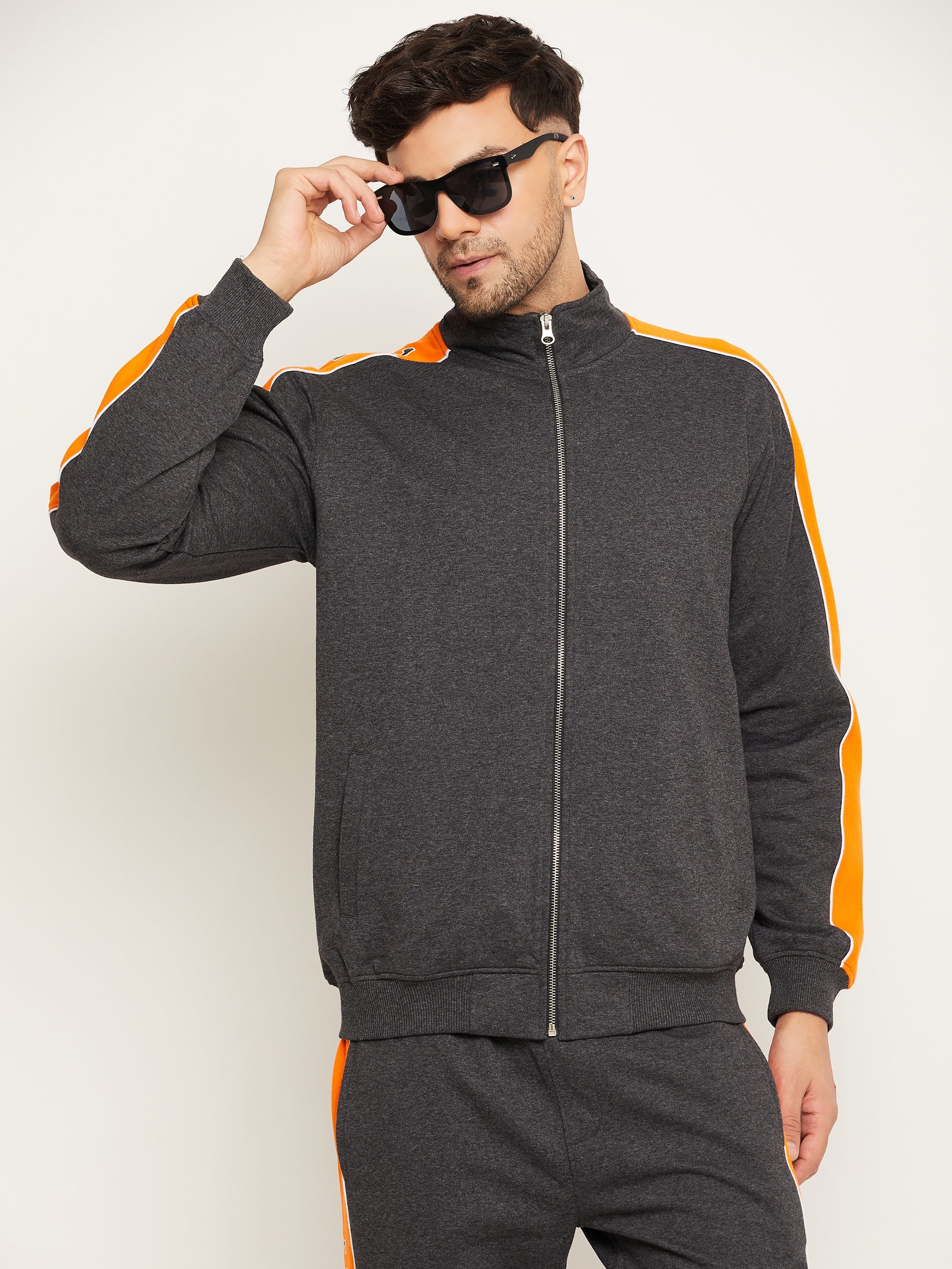 Anthra Melange Colorblocked Full Sleeve Mock Neck Sweatshirt 6828
