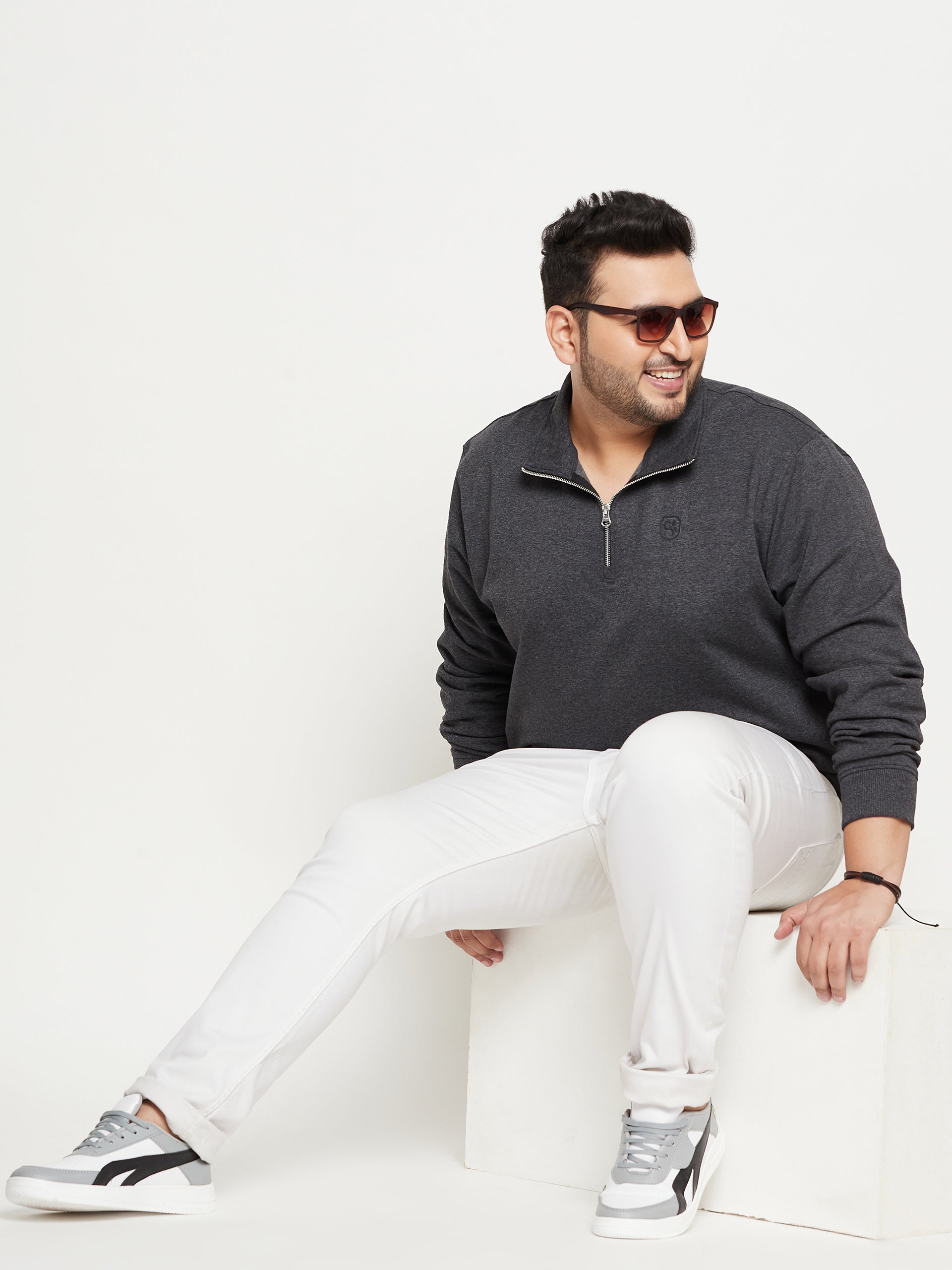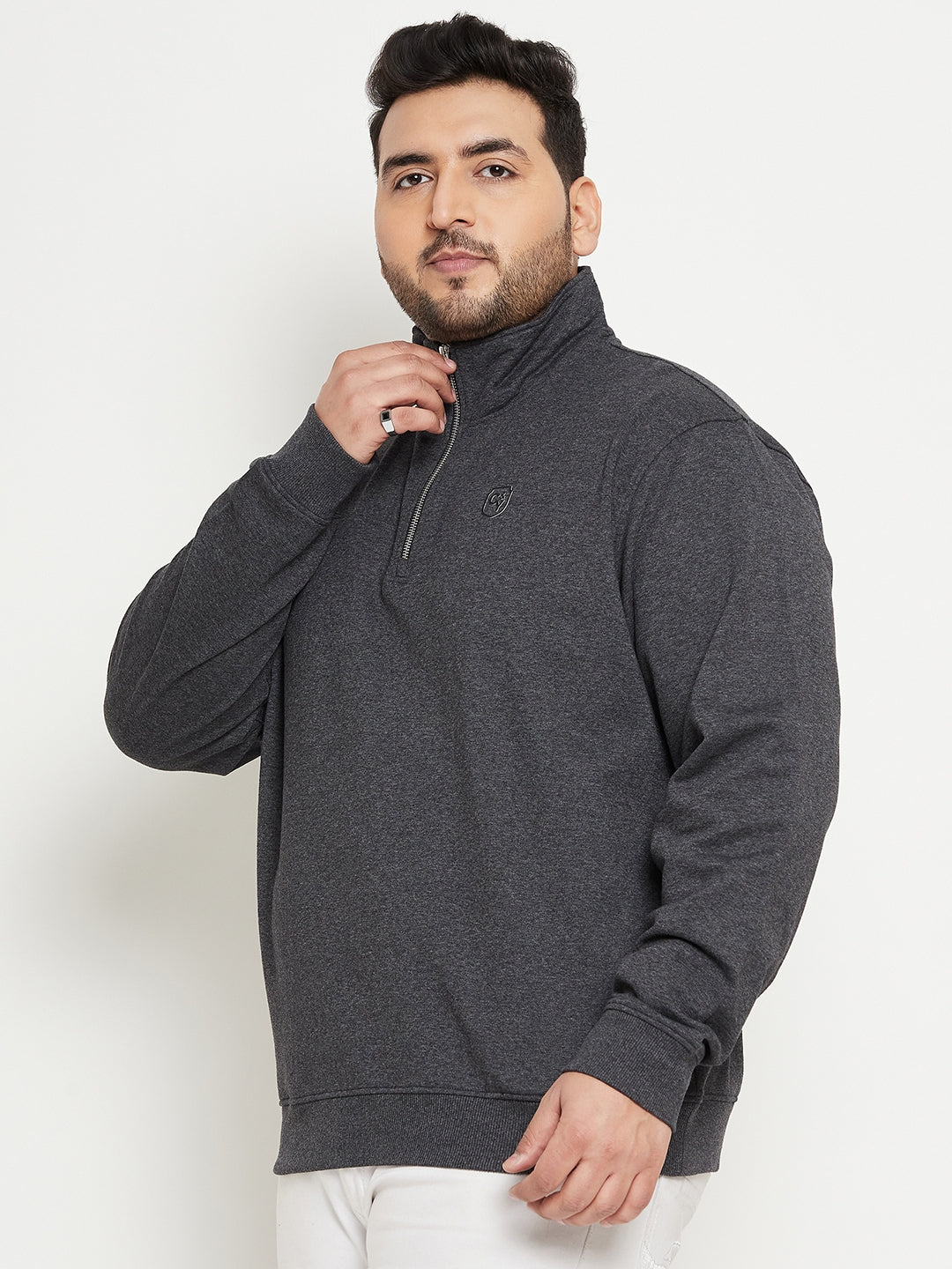 Anthra Melange Solid Full Sleeve Mock Neck Plus Size Sweatshirt 4008