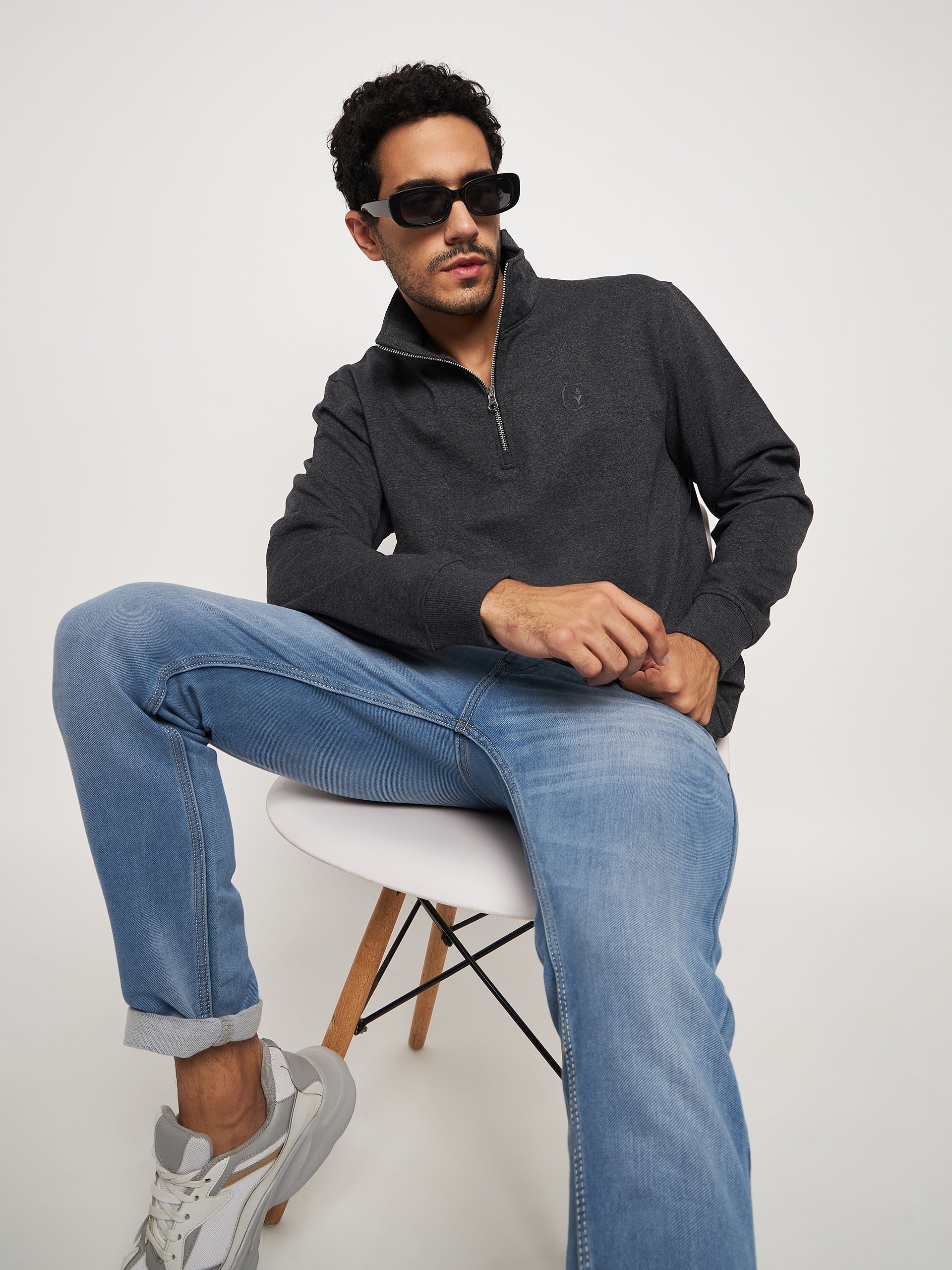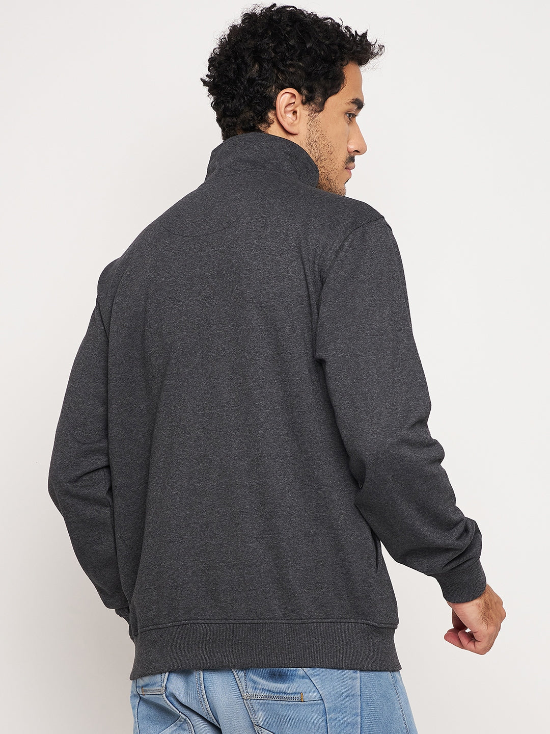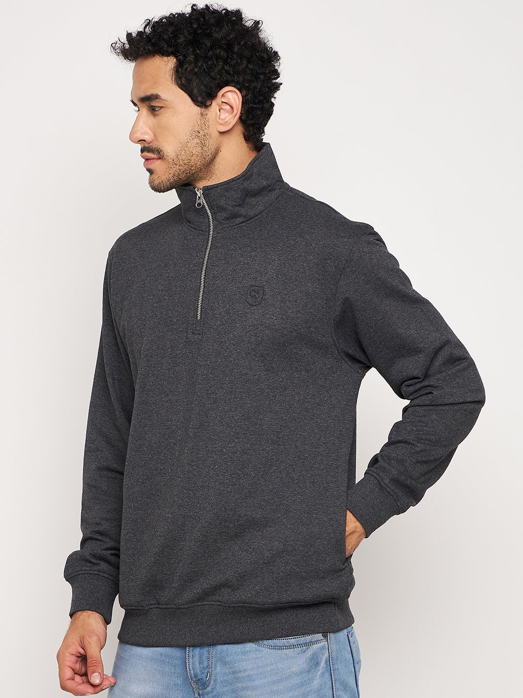 Anthra Melange Solid Full Sleeve Mock Neck Sweatshirt 8470