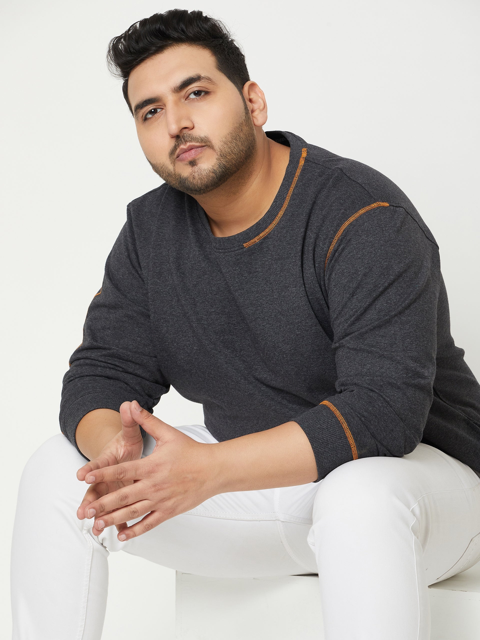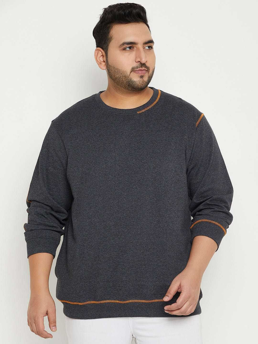 Anthra Melange Solid Full Sleeve Round Neck Plus Size Sweatshirt 2394
