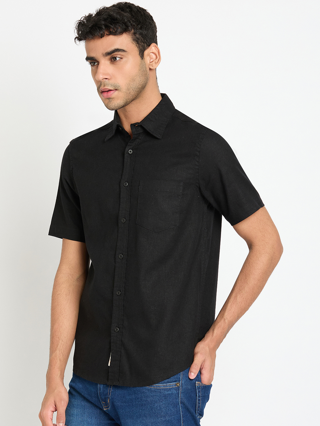 Basic Black Half Sleeves Shirt 1140