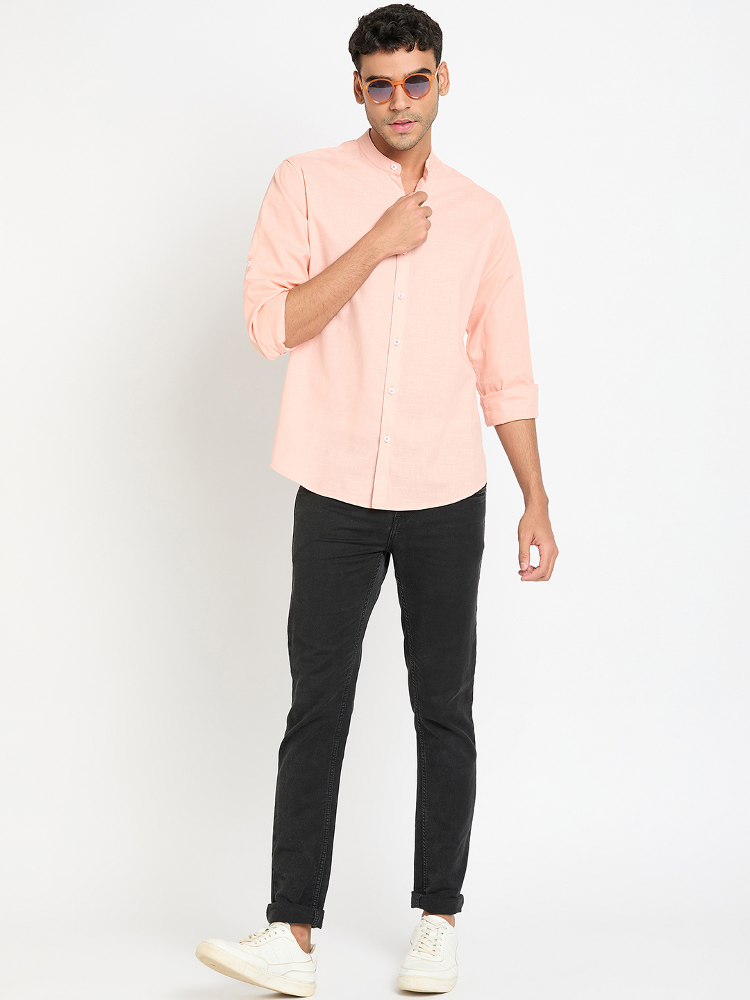 Lemon Yellow Solid Mandarin Collar Shirt 7869