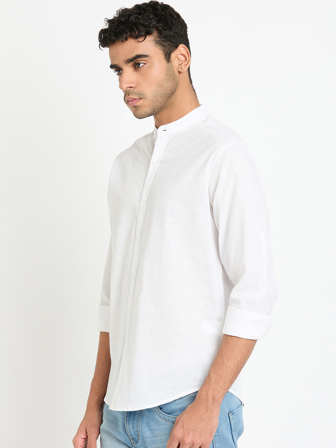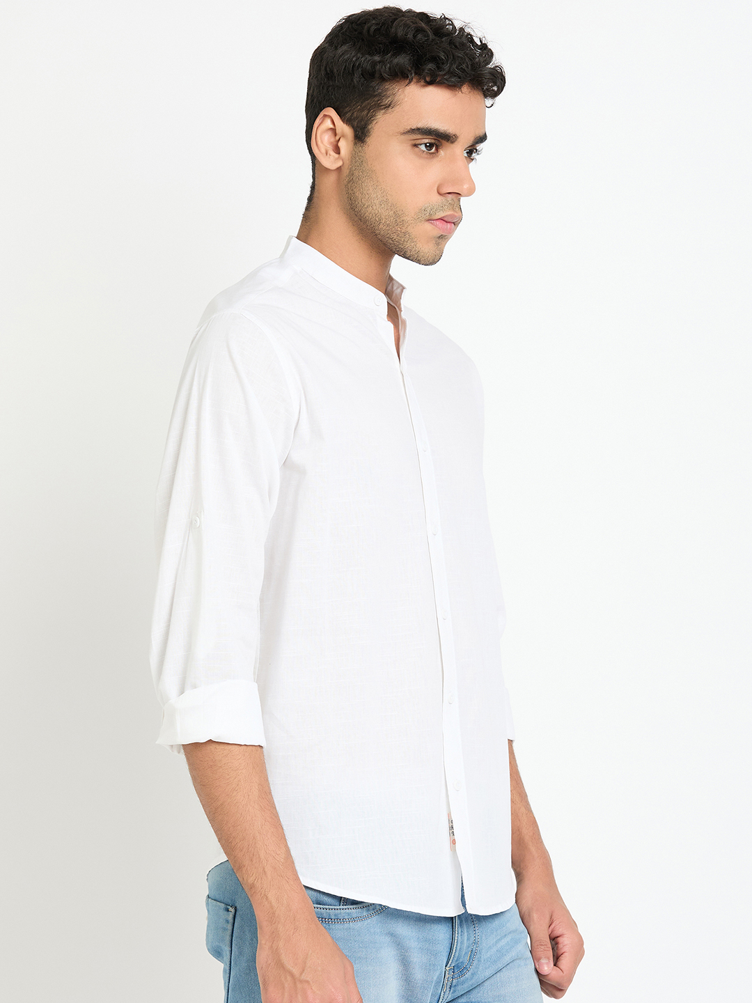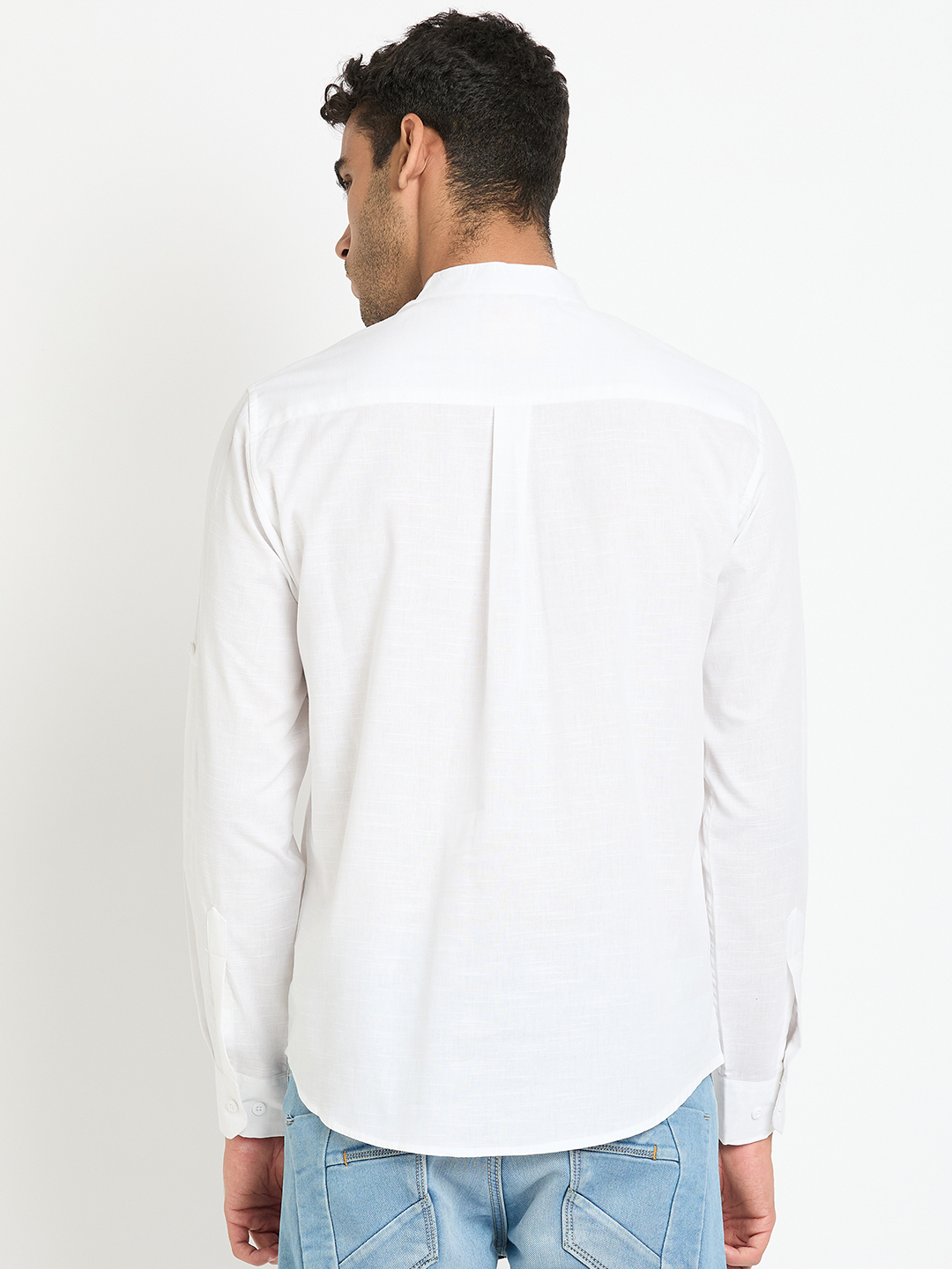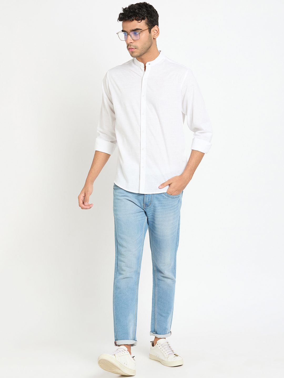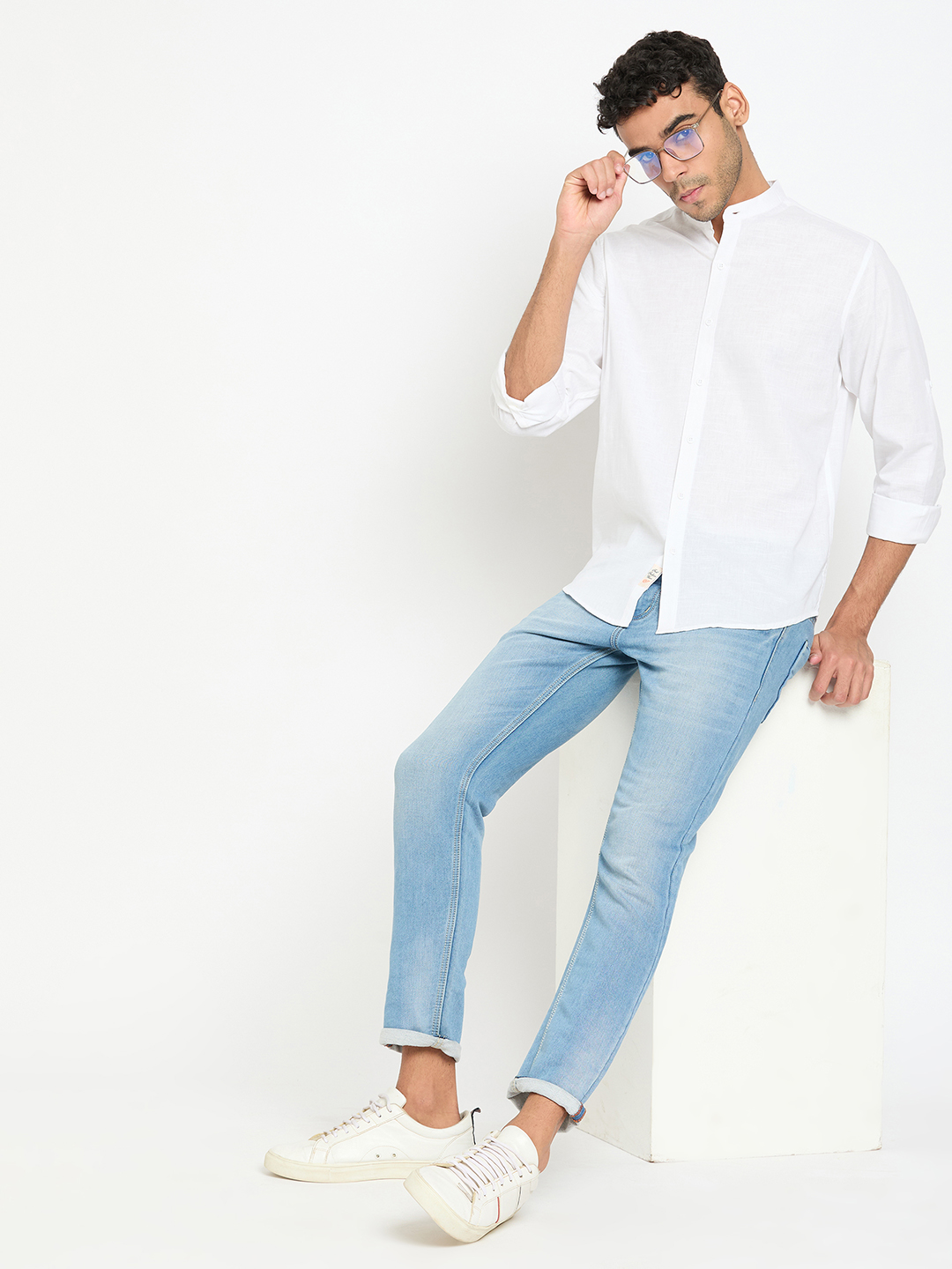 Men Slim Fit Vertical Striped Sky Blue Spread Collar Casual Shirt