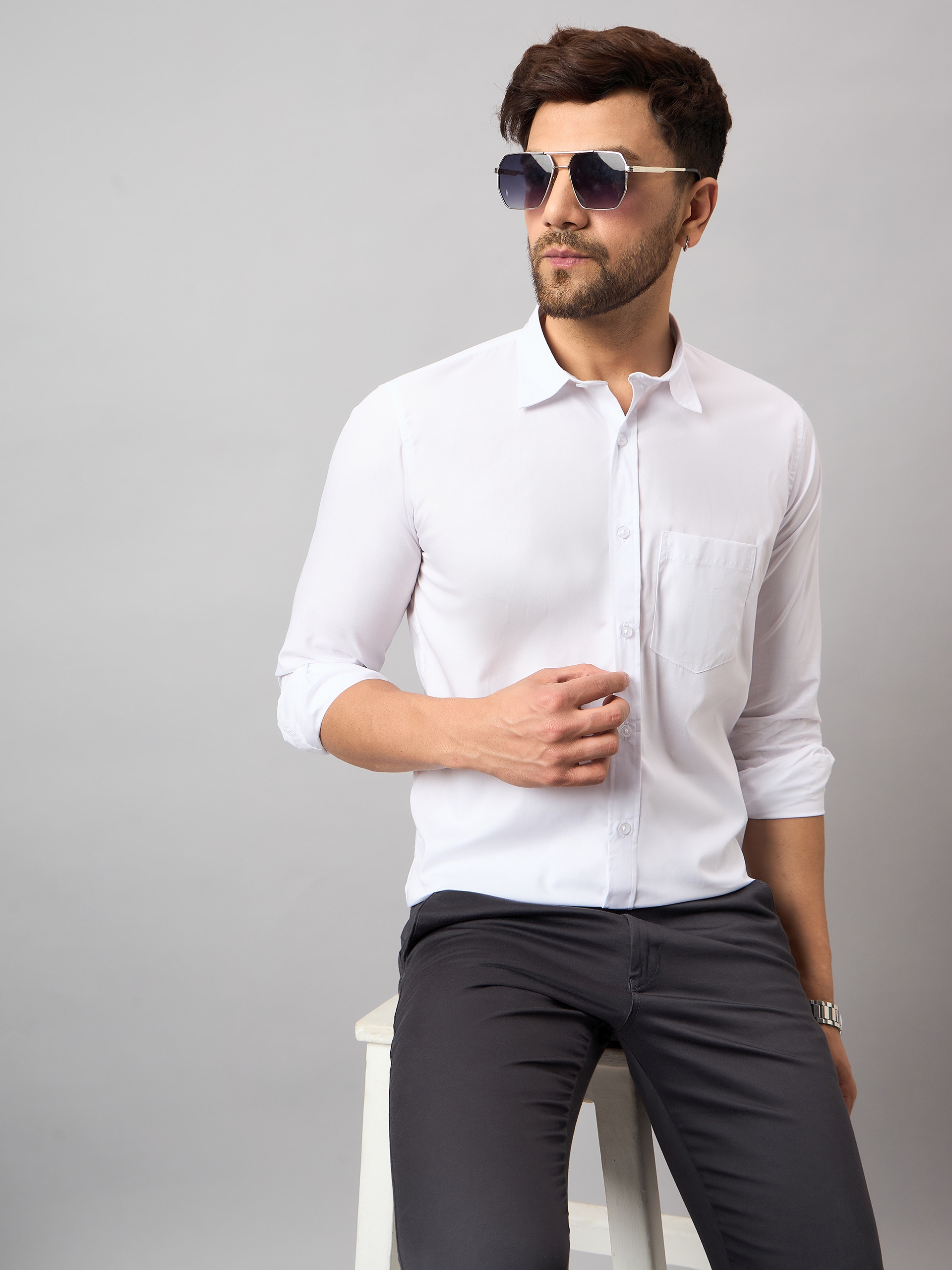 Men Slim Fit Vertical Striped Spread Collar Casual Shirt