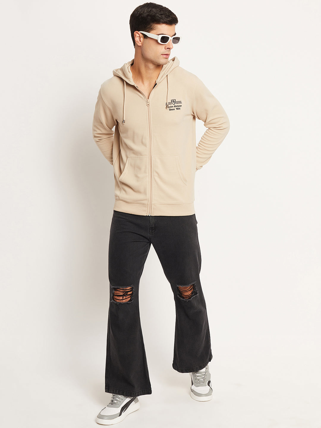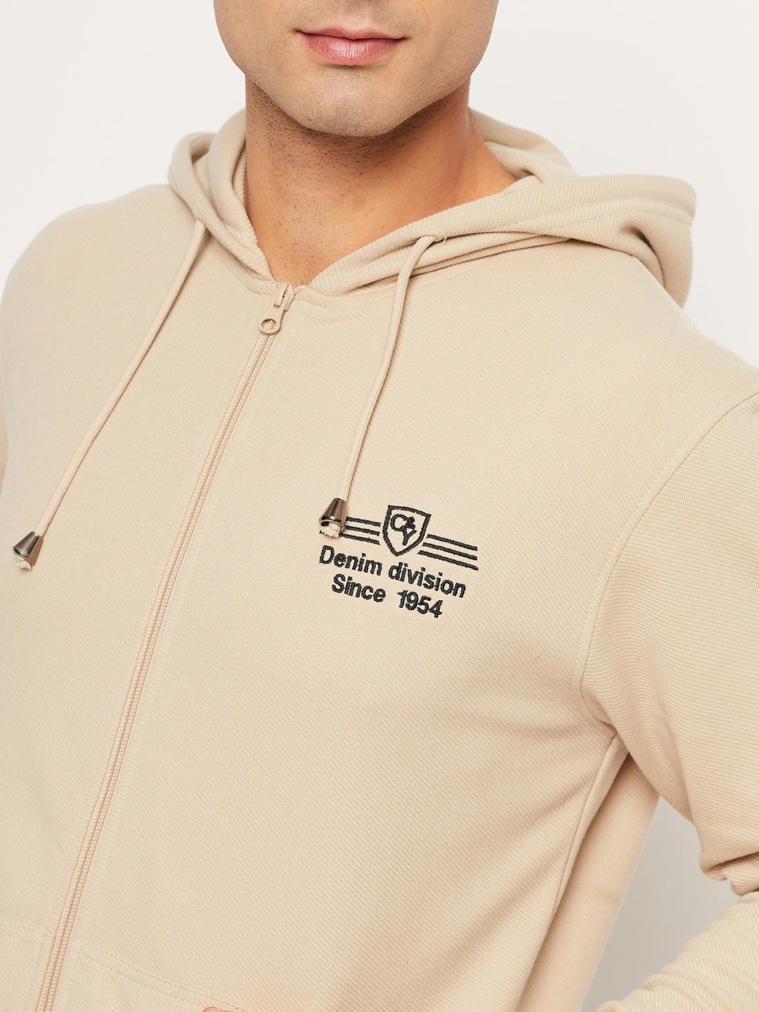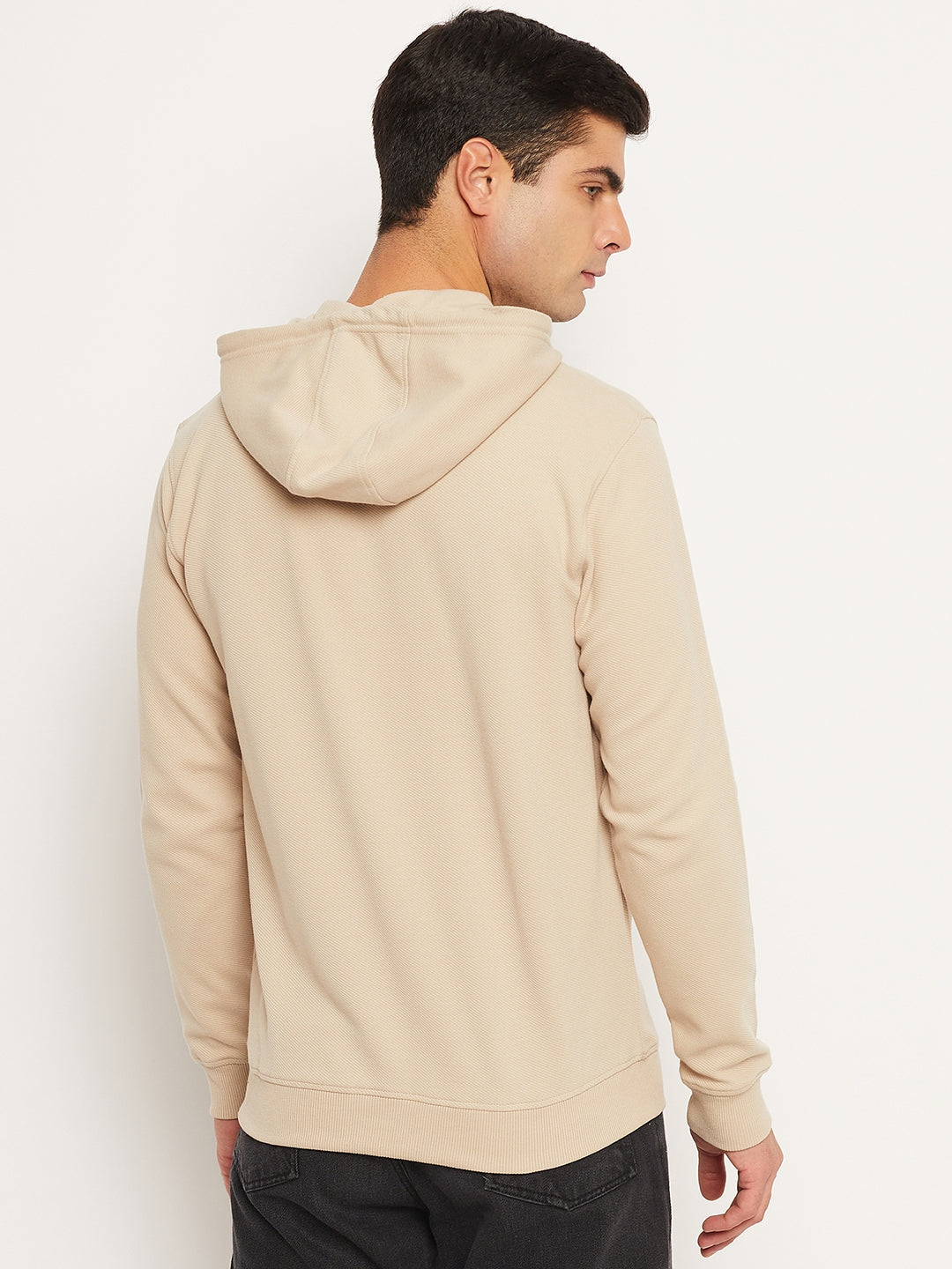 Beige Solid Full Sleeve Hooded Plus Size Sweatshirt 2659