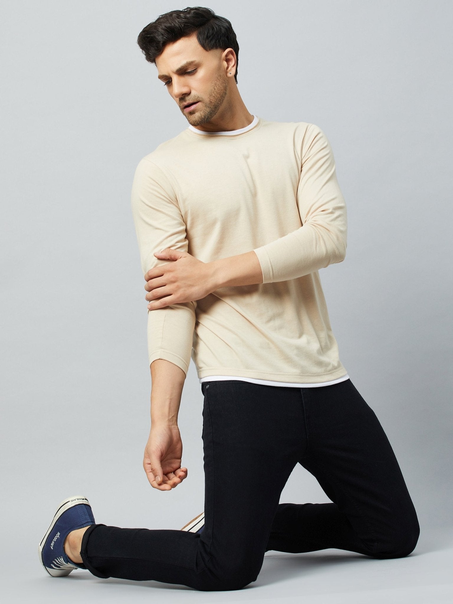 Coffee Brown Printed Half Sleeve Round Neck T-Shirt 6951