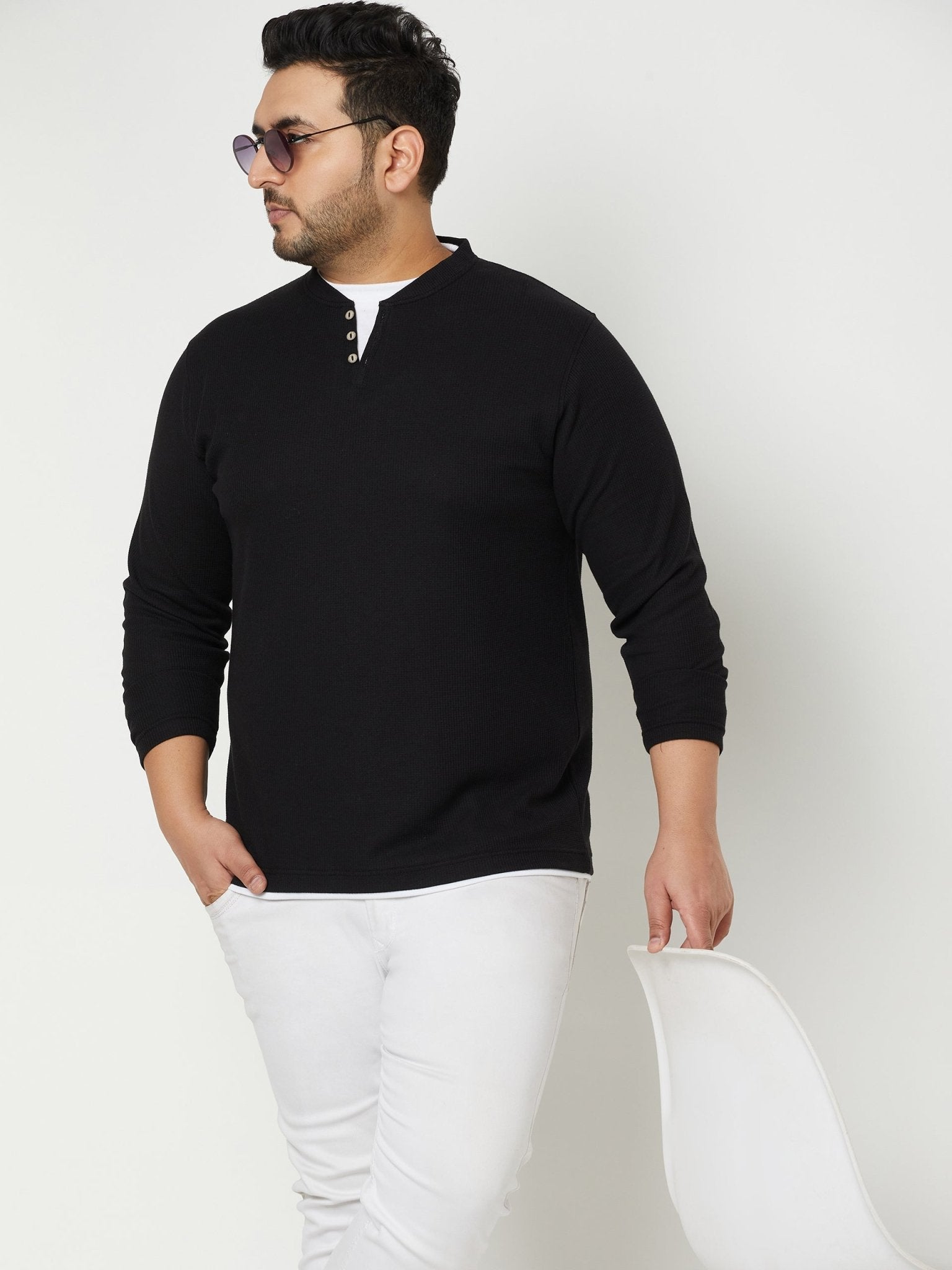 Black Colorblocked Round Neck Plus Size T-Shirt 1302