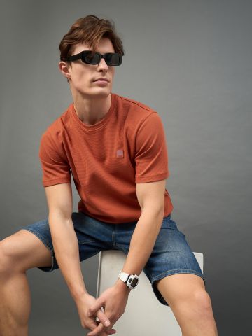 Bright Peach Printed Round Neck Plus Size T-Shirt 3878