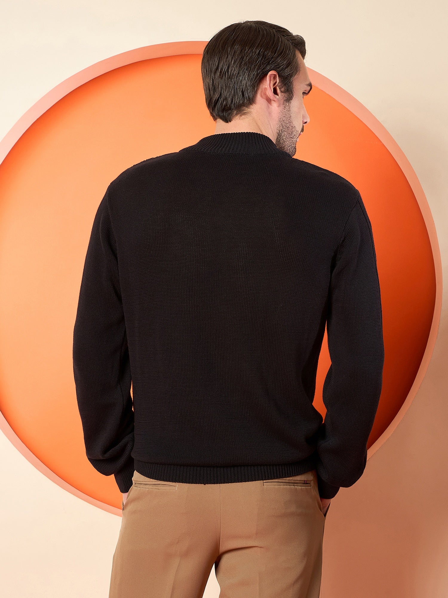 Black Solid Full Sleeve Hooded Plus Size Sweatshirt 8077