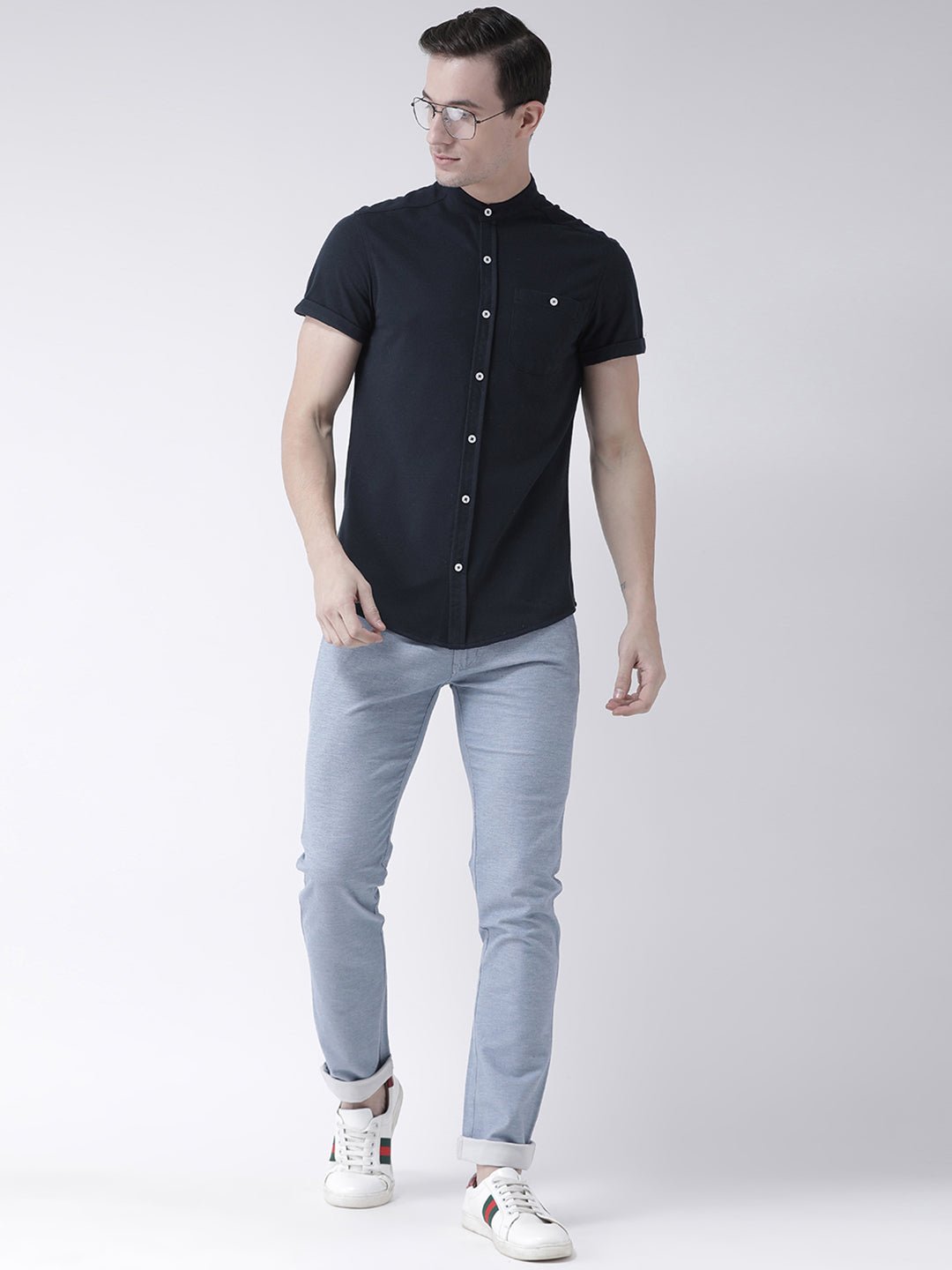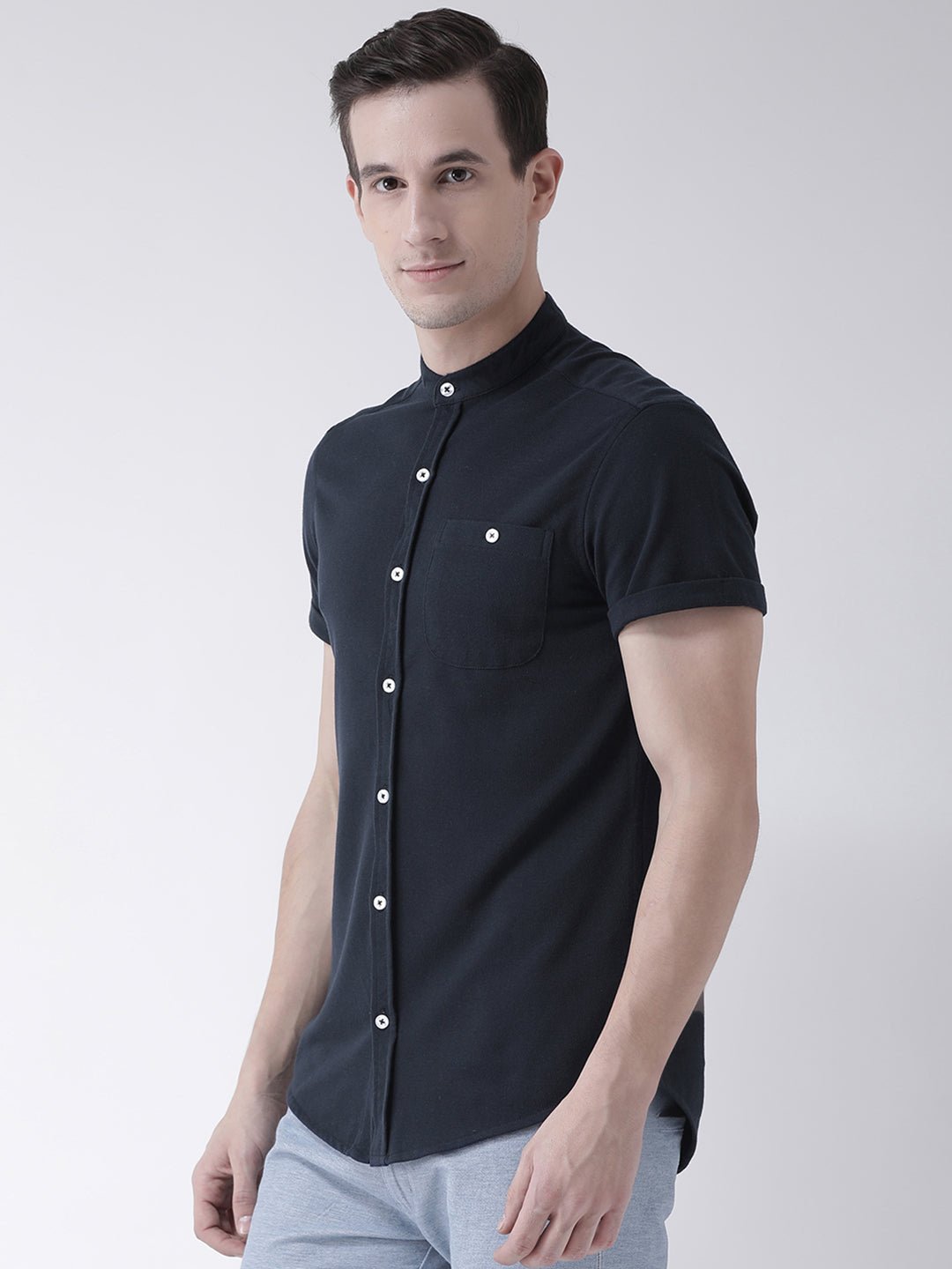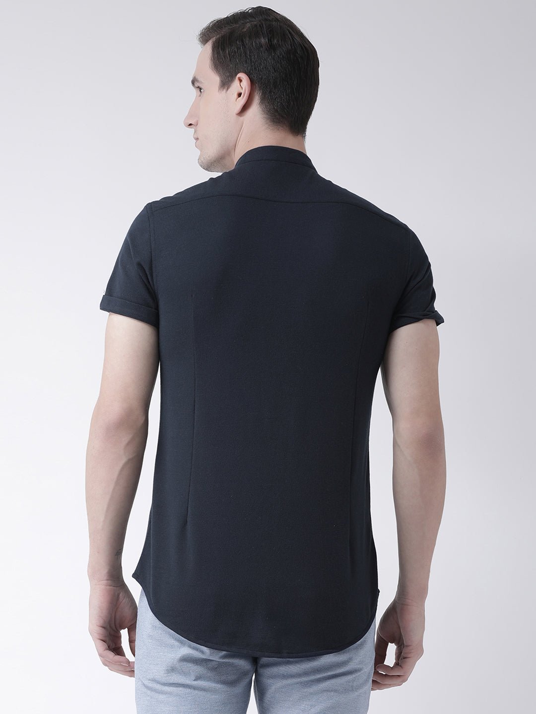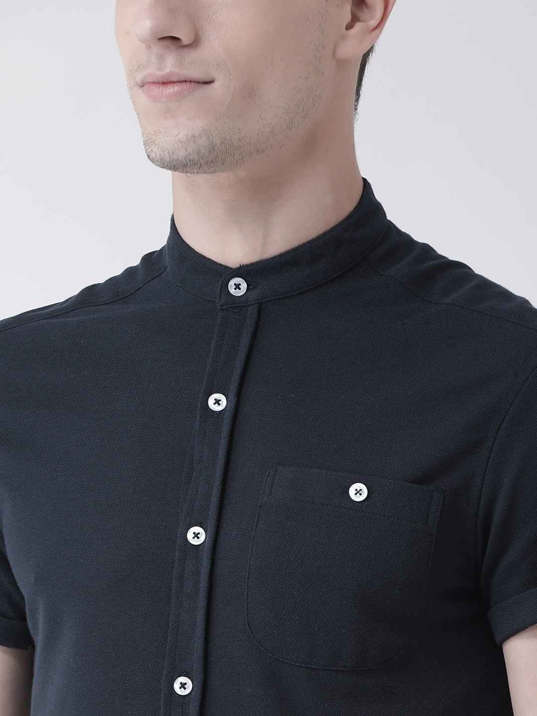 Black Mandarin Knitted Shirt Has Chest Pocket Sm61 5918