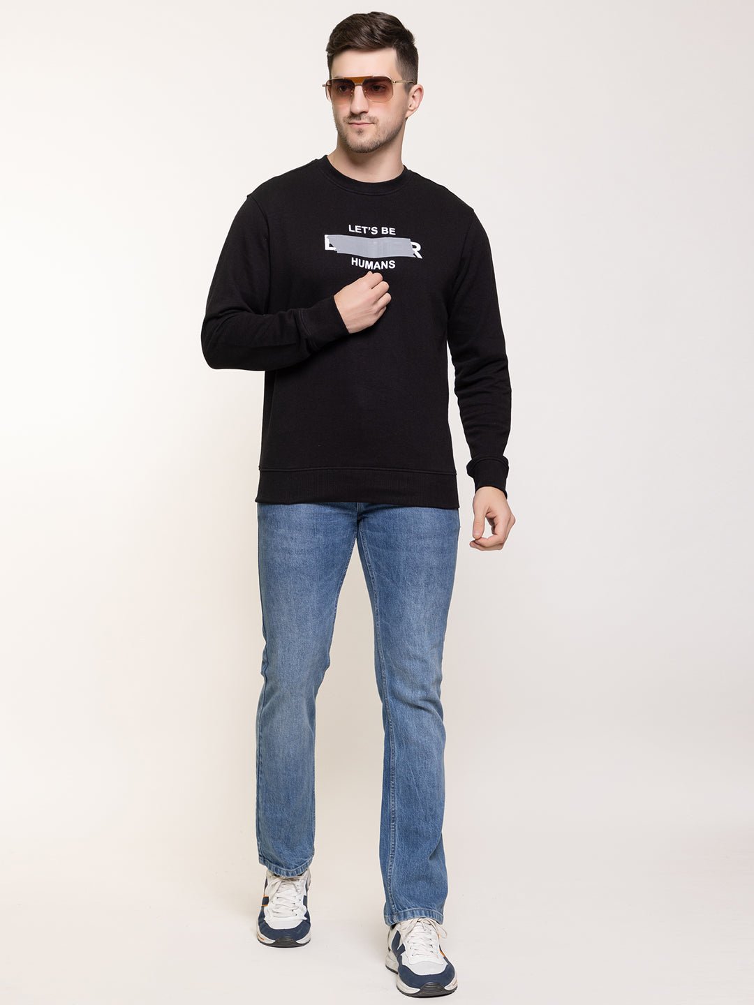 Black Printed Round Neck Sweatshirt Cy529 7107