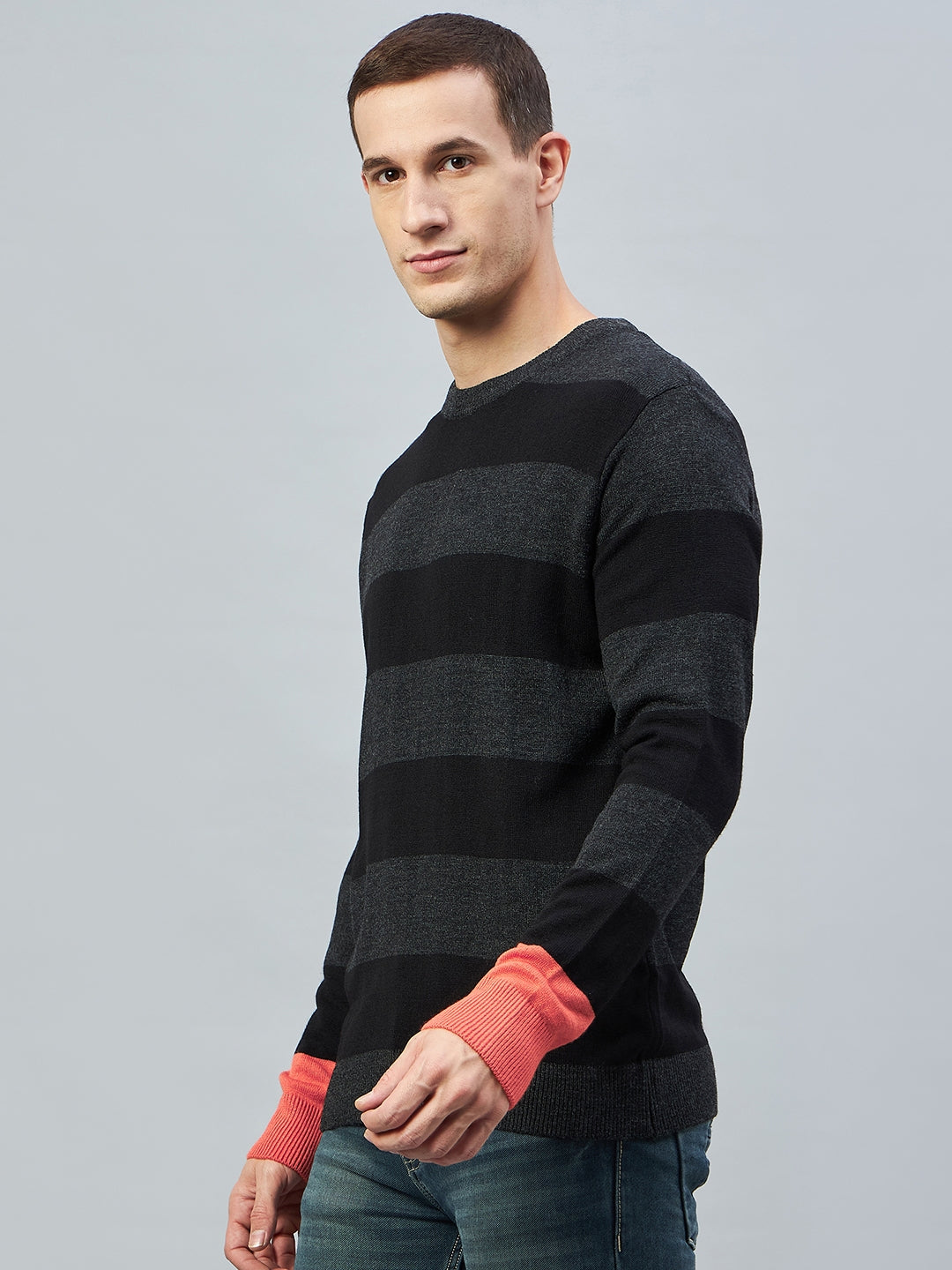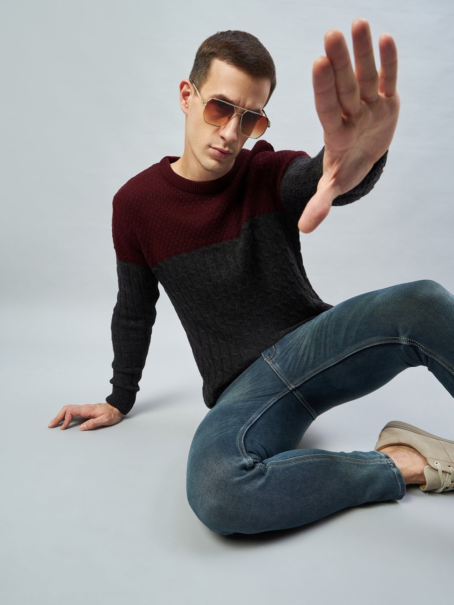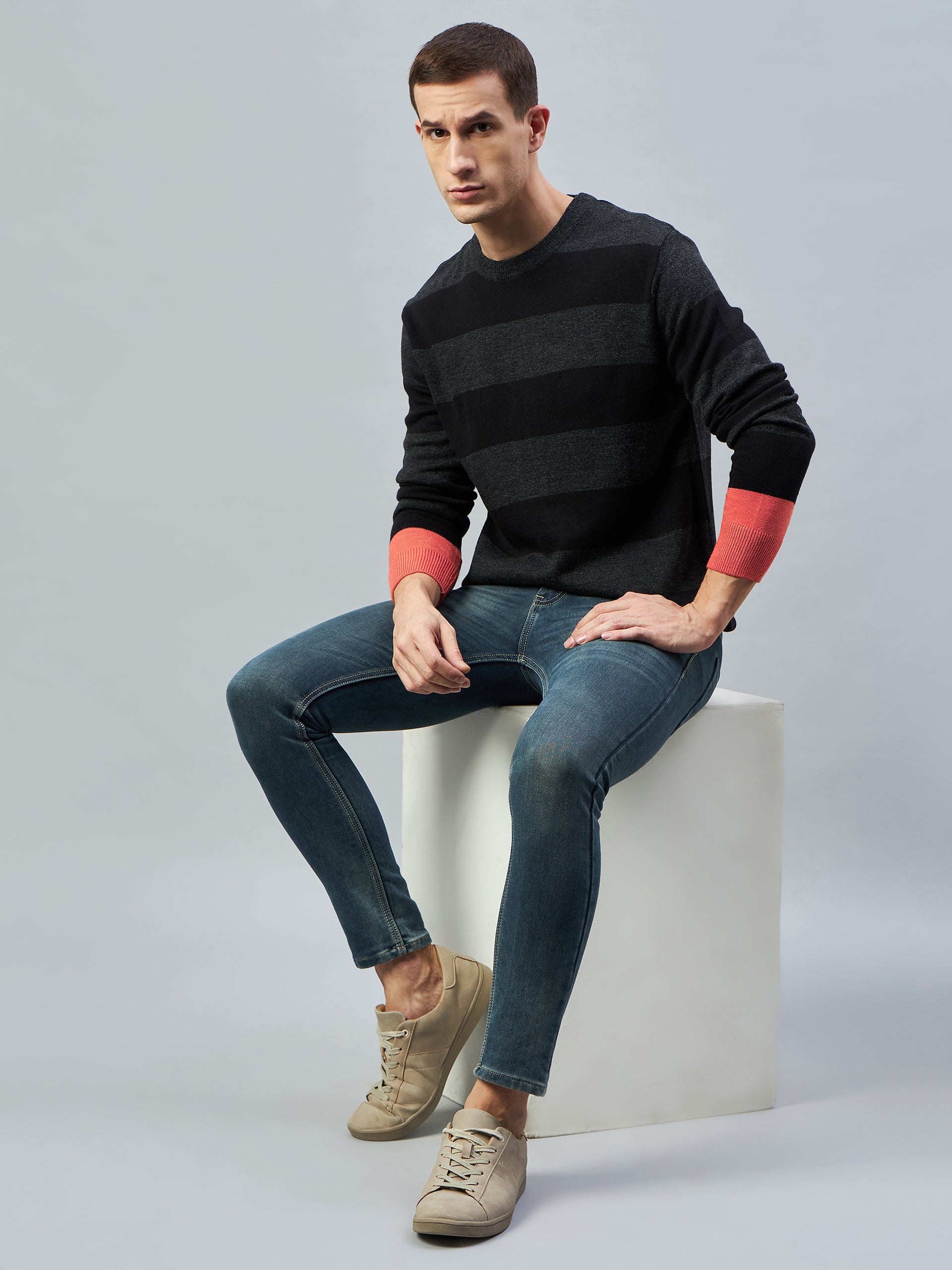 Navy Full Sleeve Solid Round Neck Sweater 3752