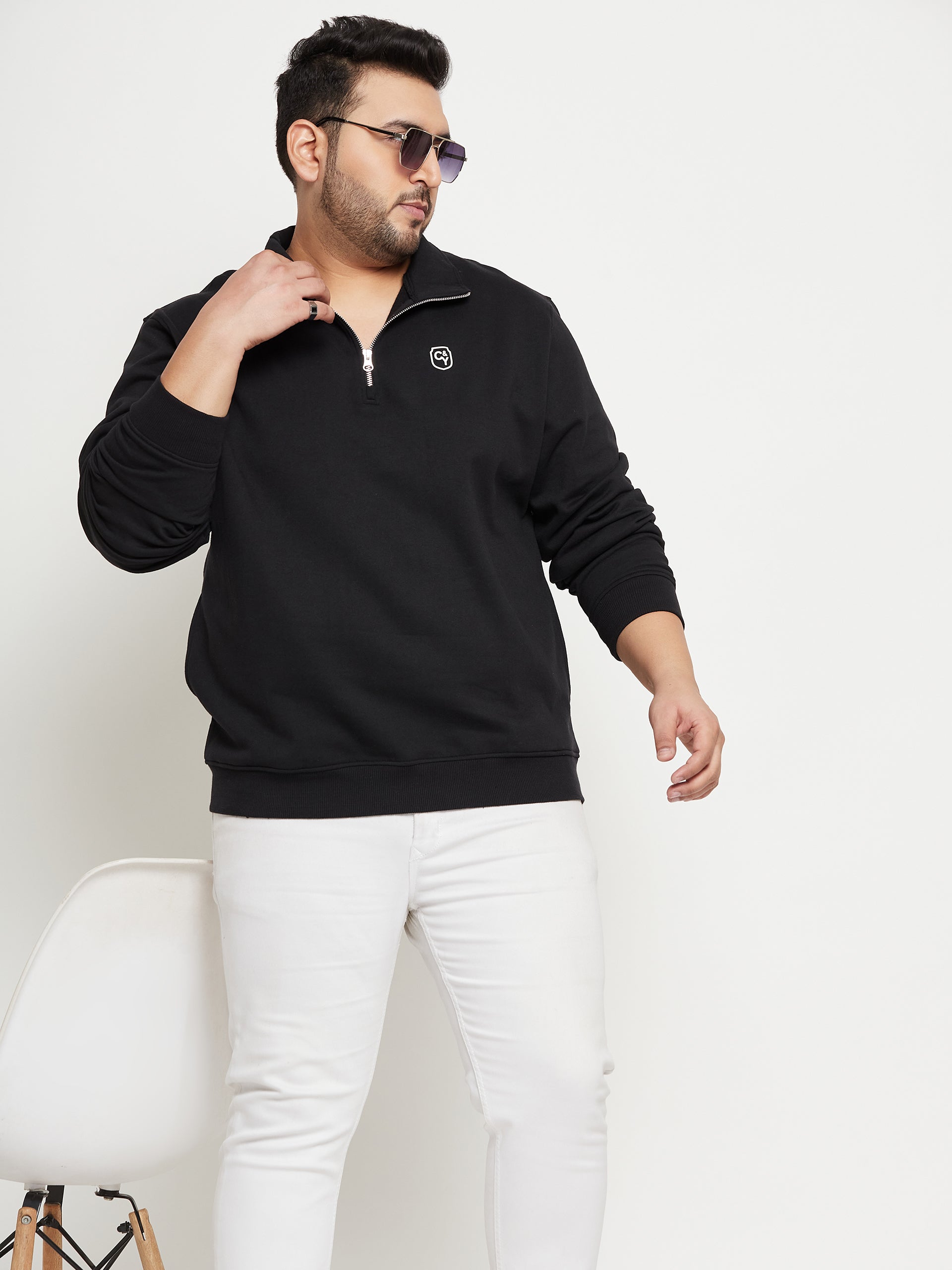 Black Solid Full Sleeve Mock Neck Plus Size Sweatshirt 7589