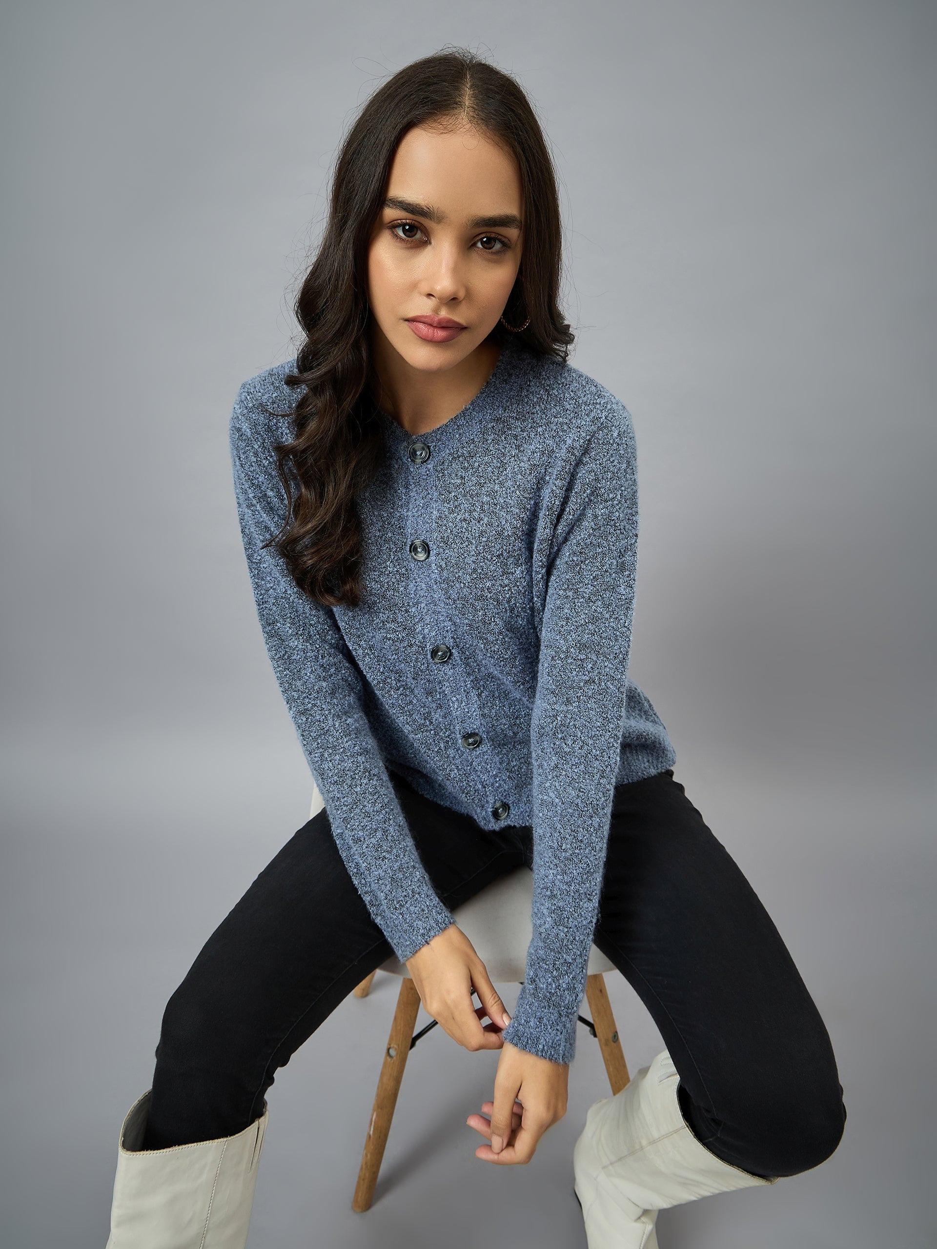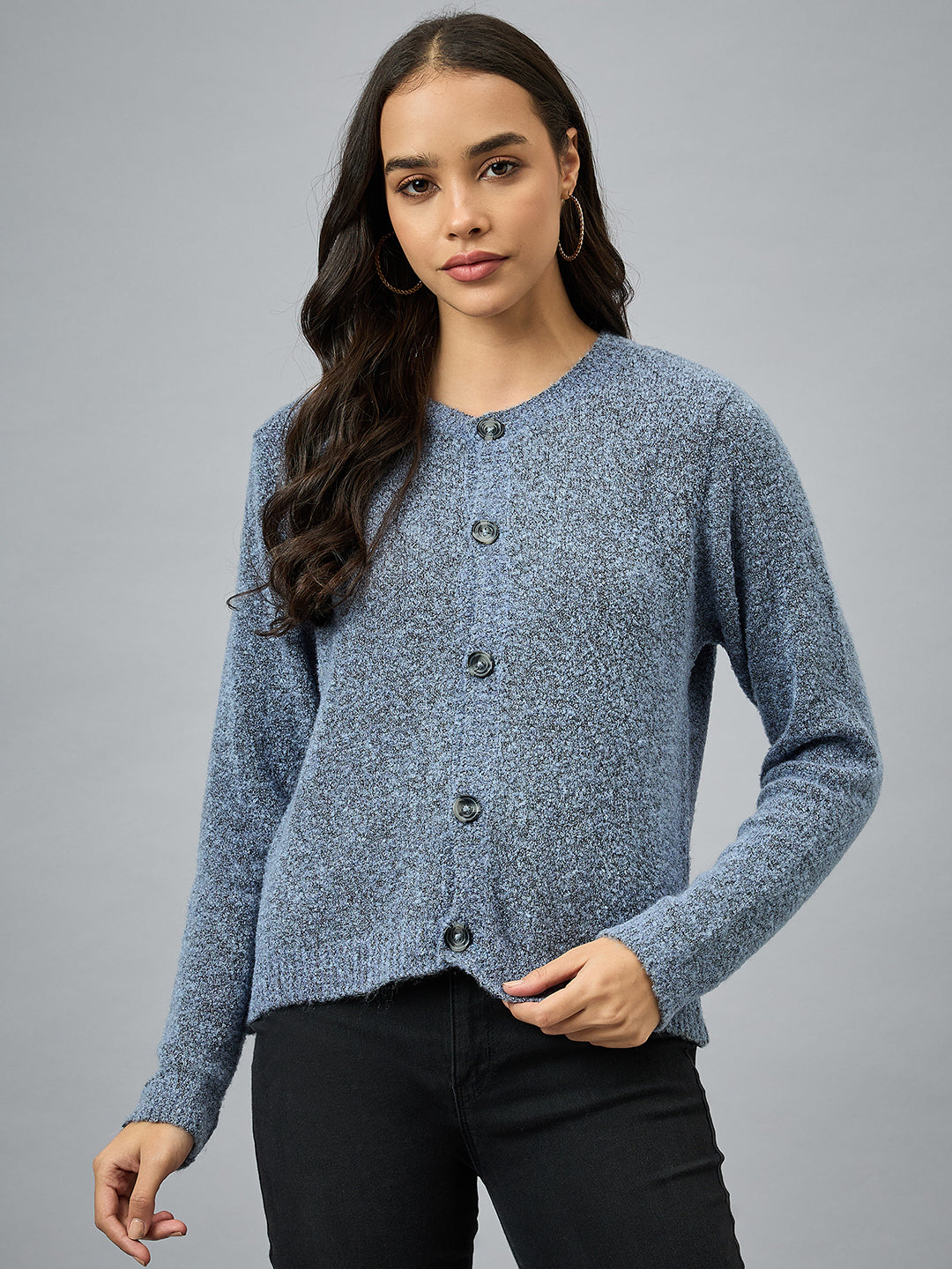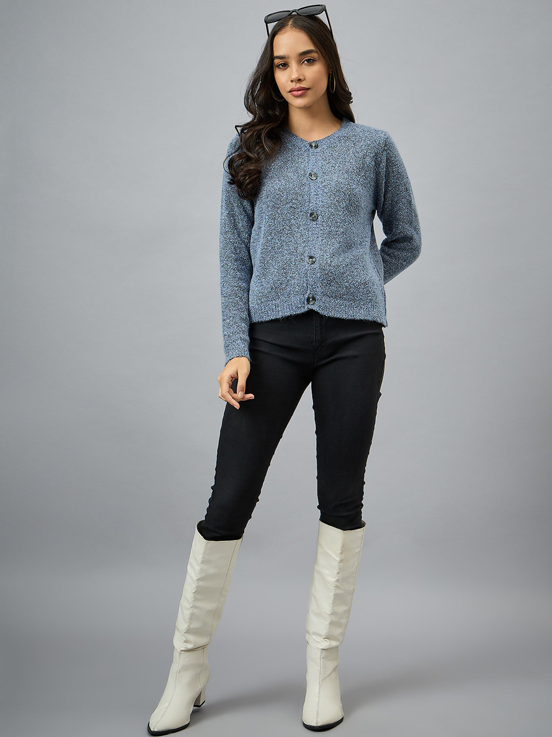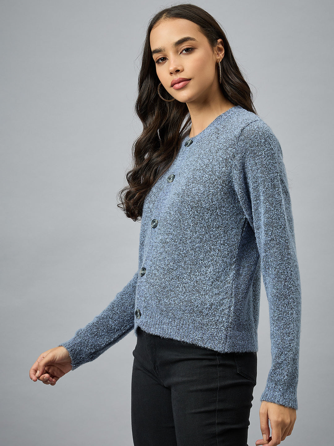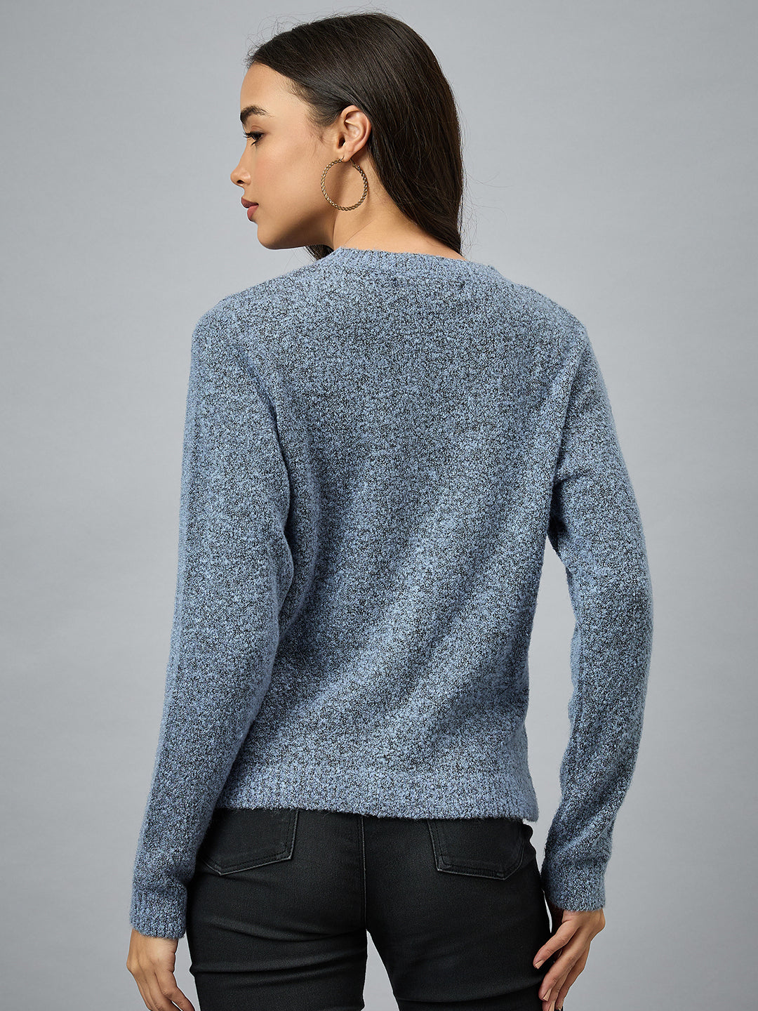 Ecru Melange High Neck Colorblocked Sweater 9647