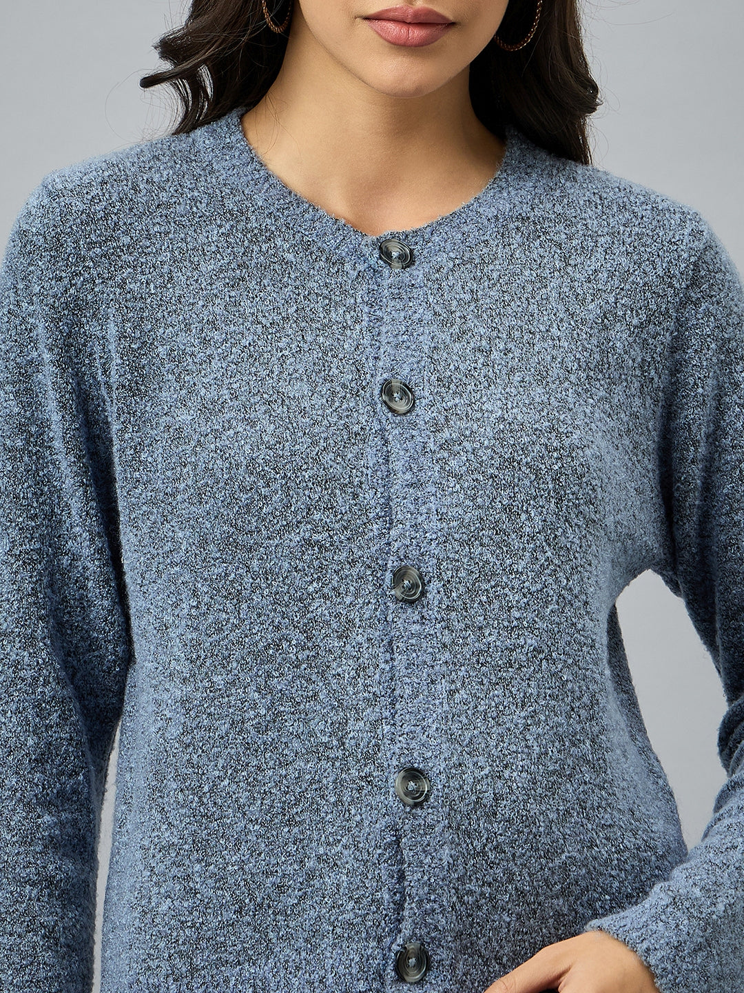 Pink Solid V-Neck Cardigan With Front Pocket 6056