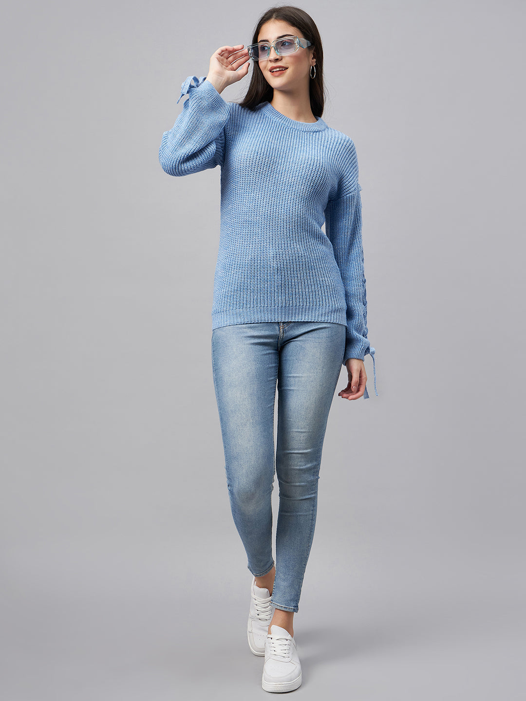 Blue Round Neck Women Sweater 8510