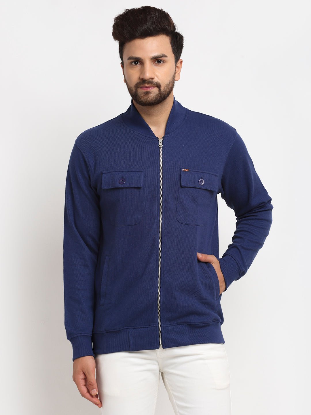 Blue Solid High Neck Sweatshirt Cy451 9589