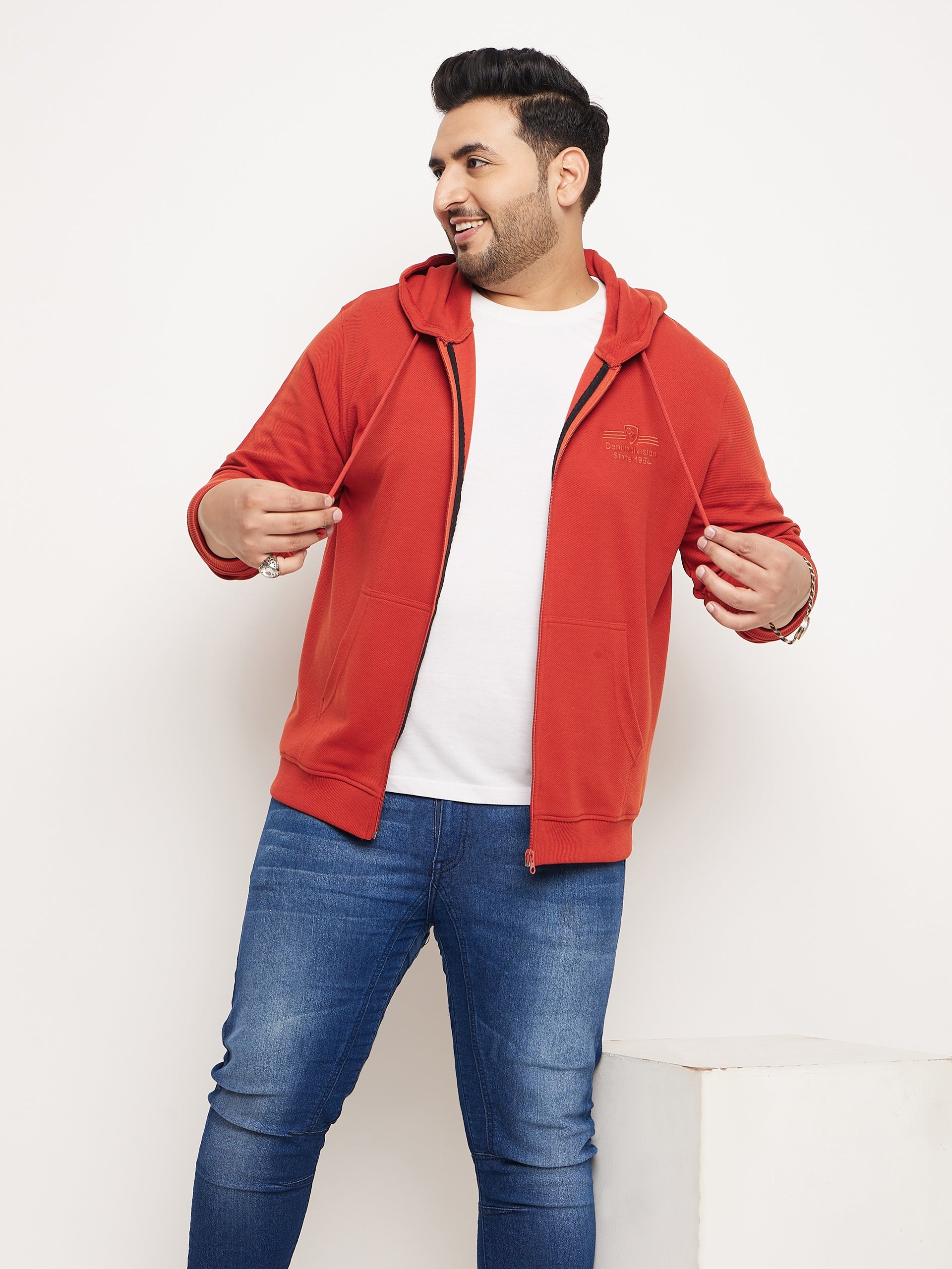 Rust Solid Full Sleeve Hooded Plus Size Sweatshirt 3323