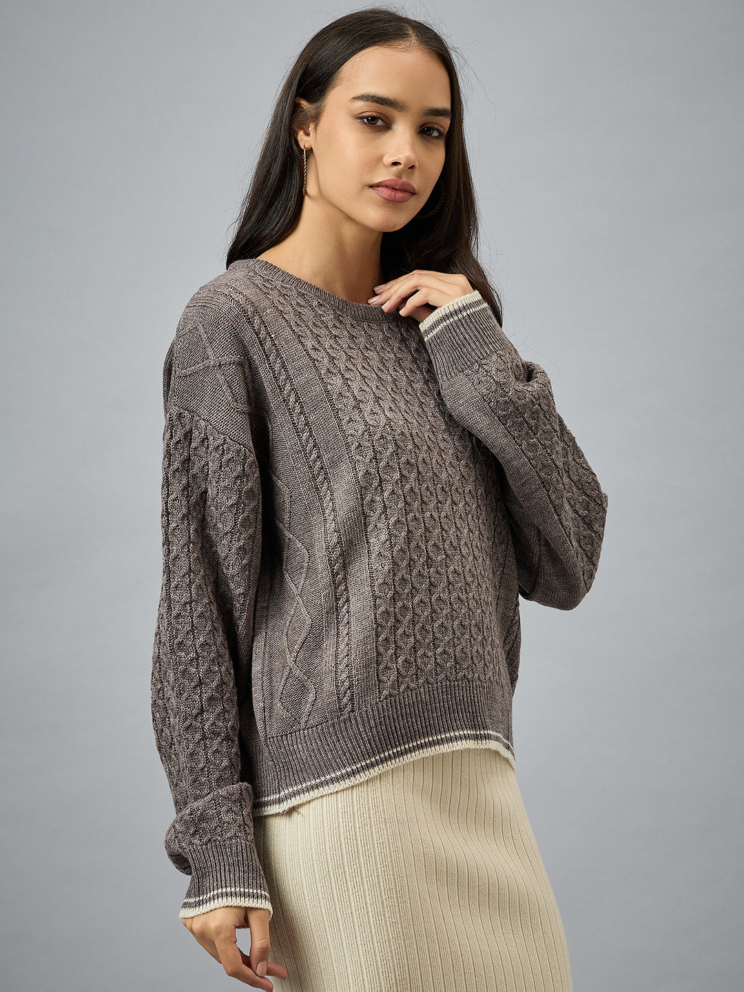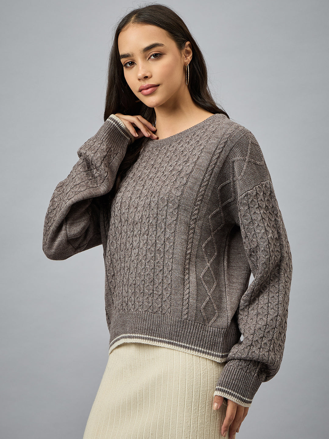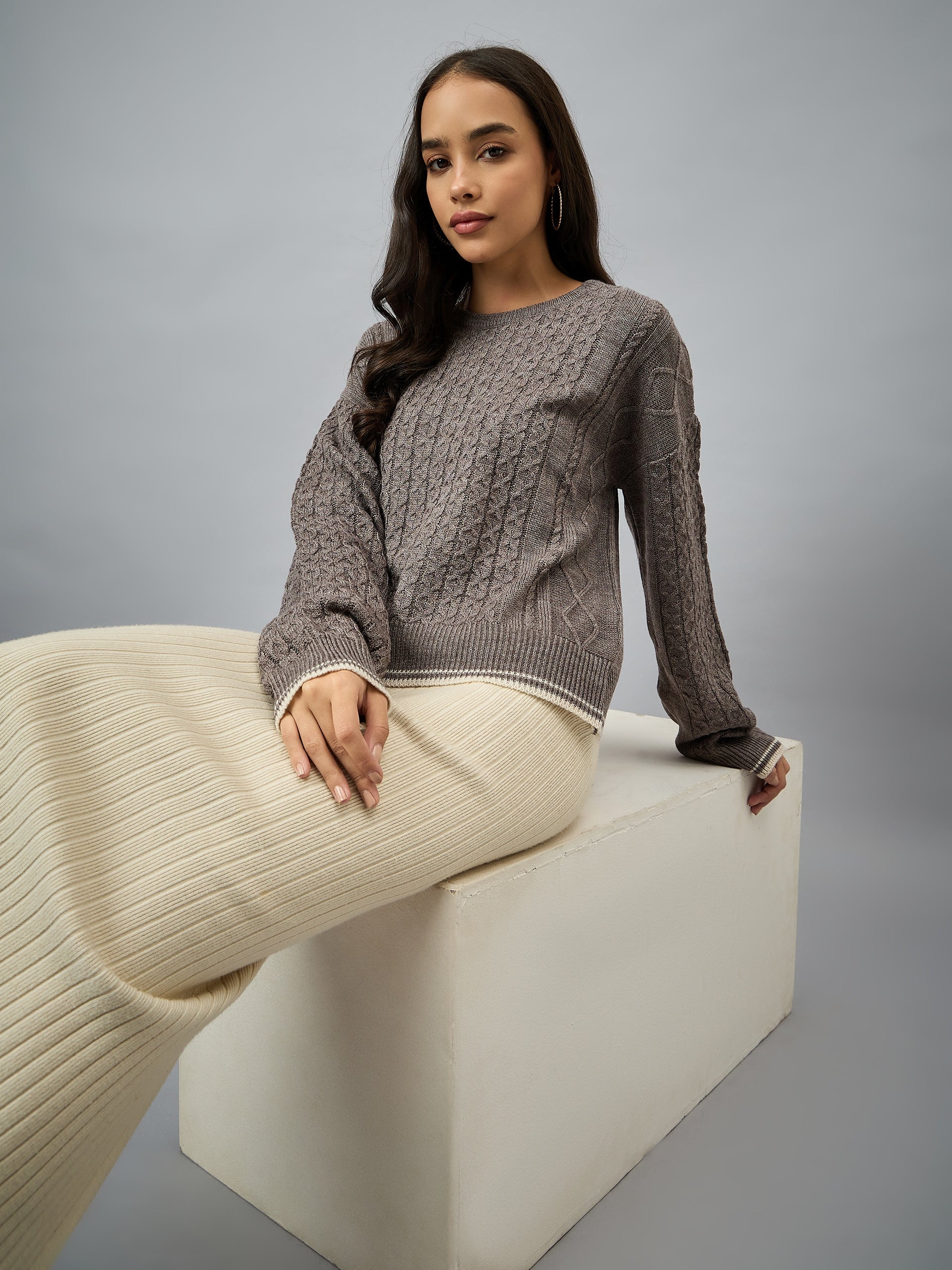 Ecru Melange High Neck Colorblocked Sweater 9647