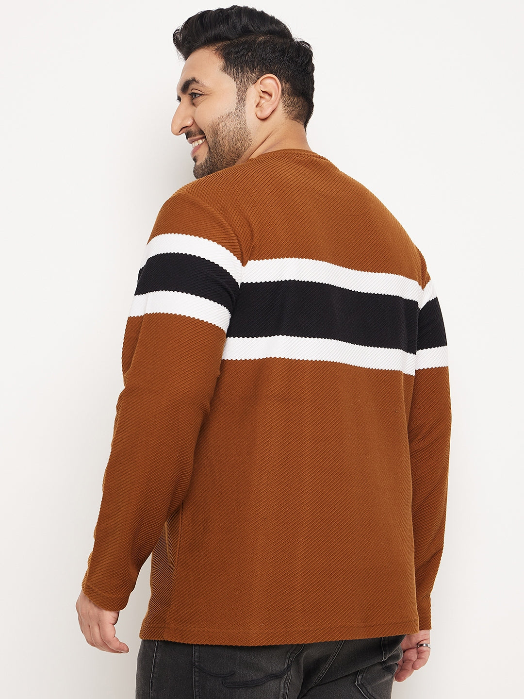 Brown Striped Full Sleeve Round Neck Plus Size Sweatshirt 4128
