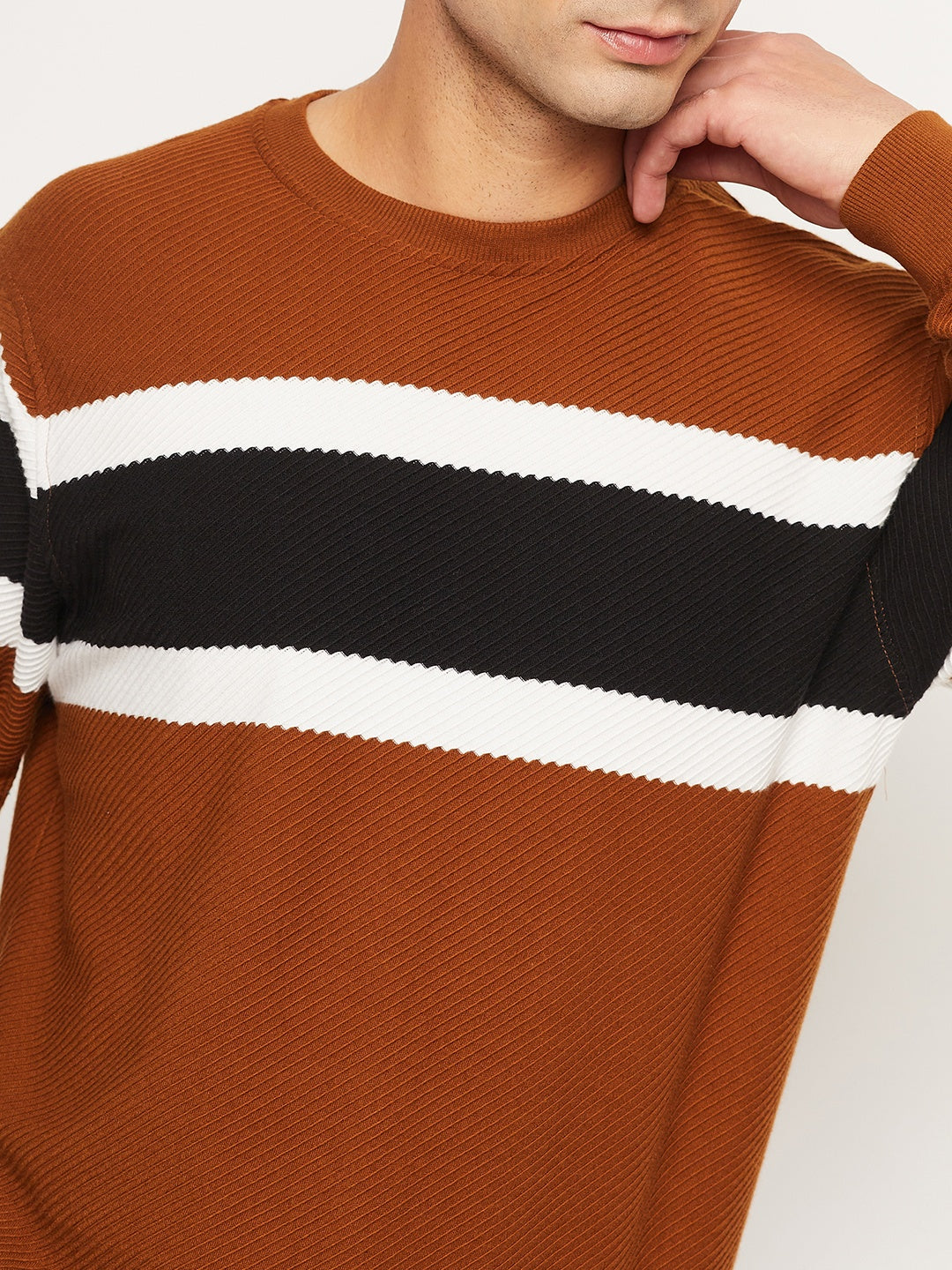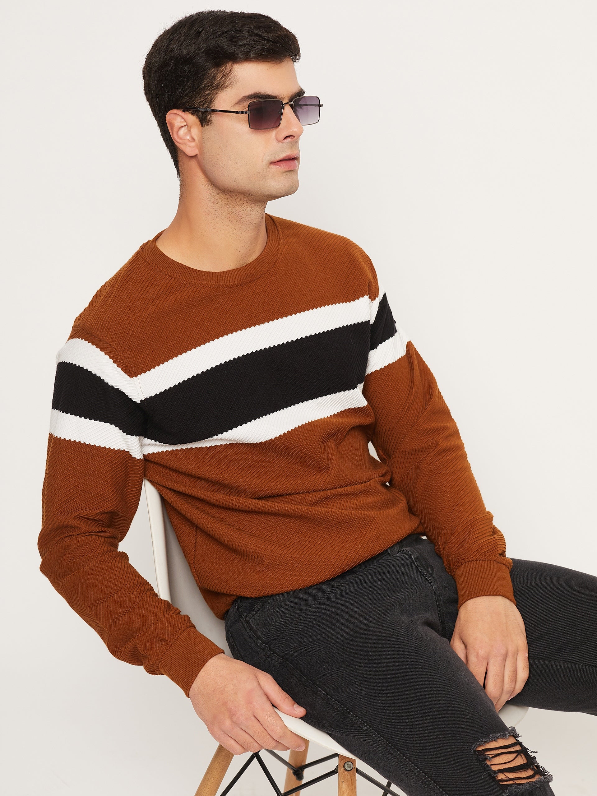 Brown Striped Full Sleeve Round Neck Sweatshirt 4552