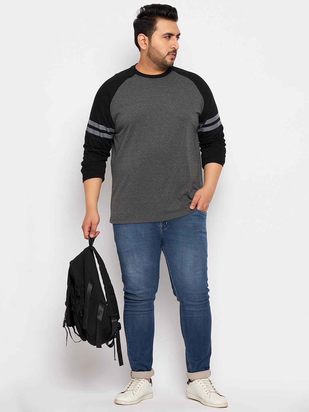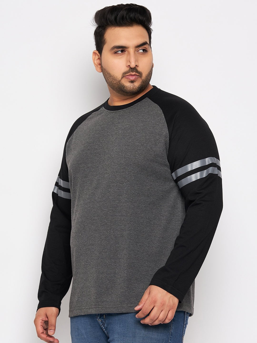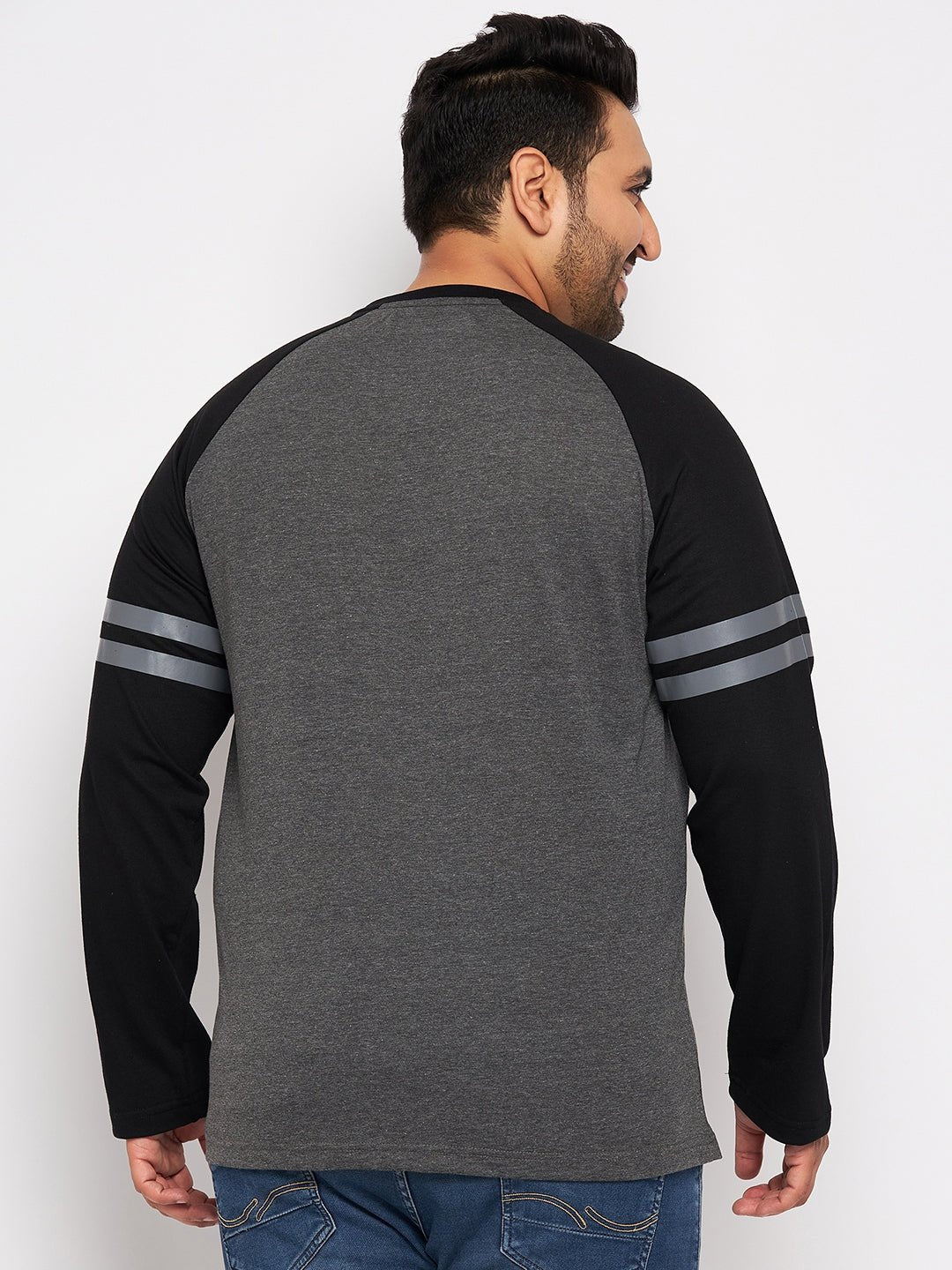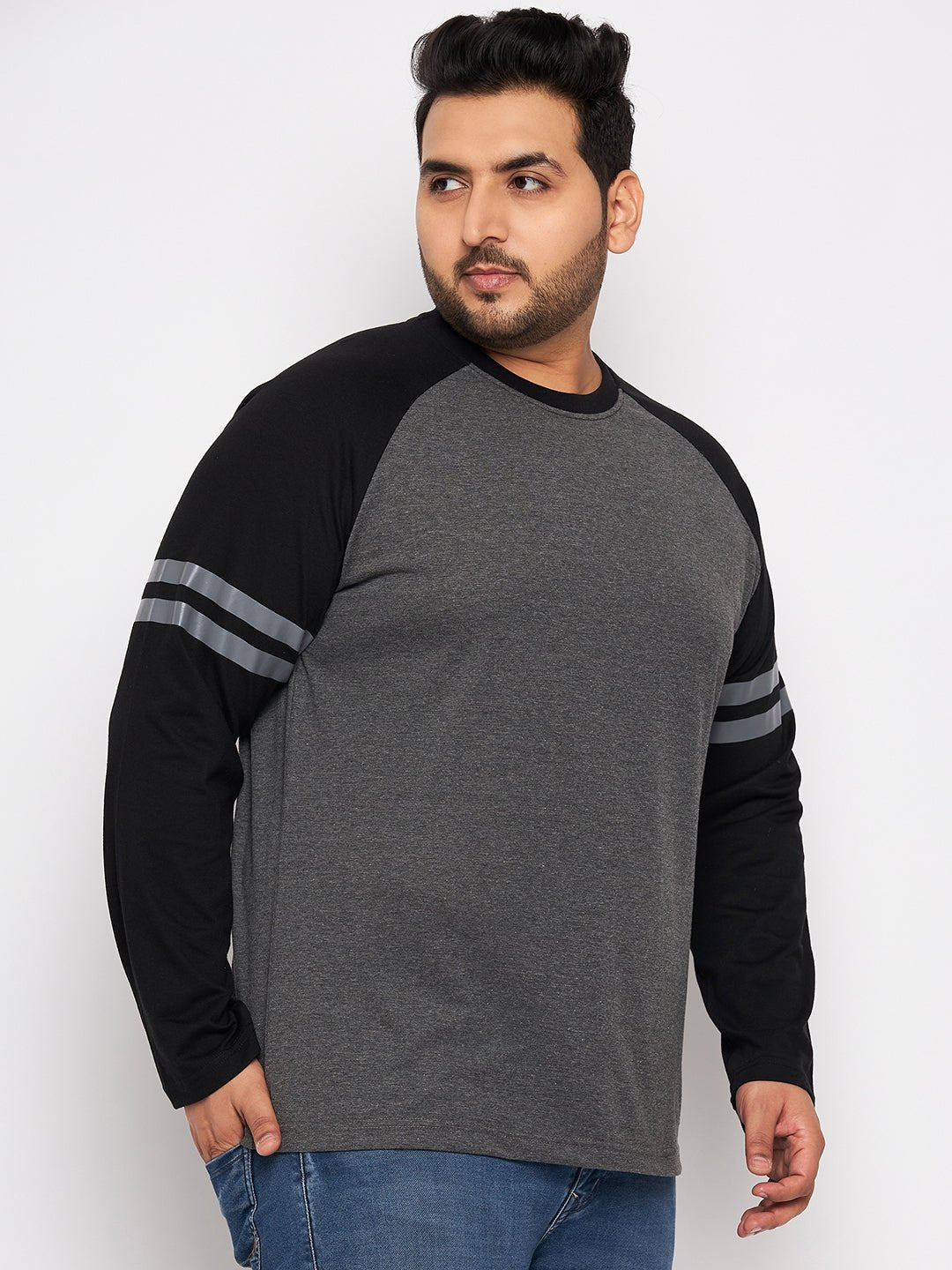 Charcoal Round Neck Colorblocked Plus Size T Shirt Mpw503xl 8221