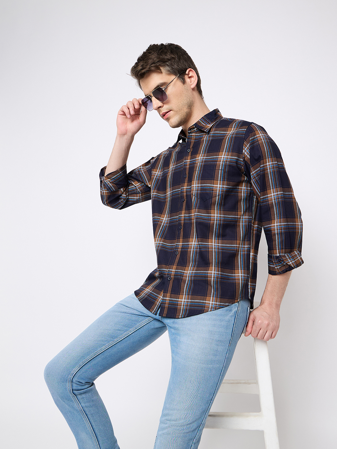 Men Floral Printed Peach Spread Collar Casual Shirt