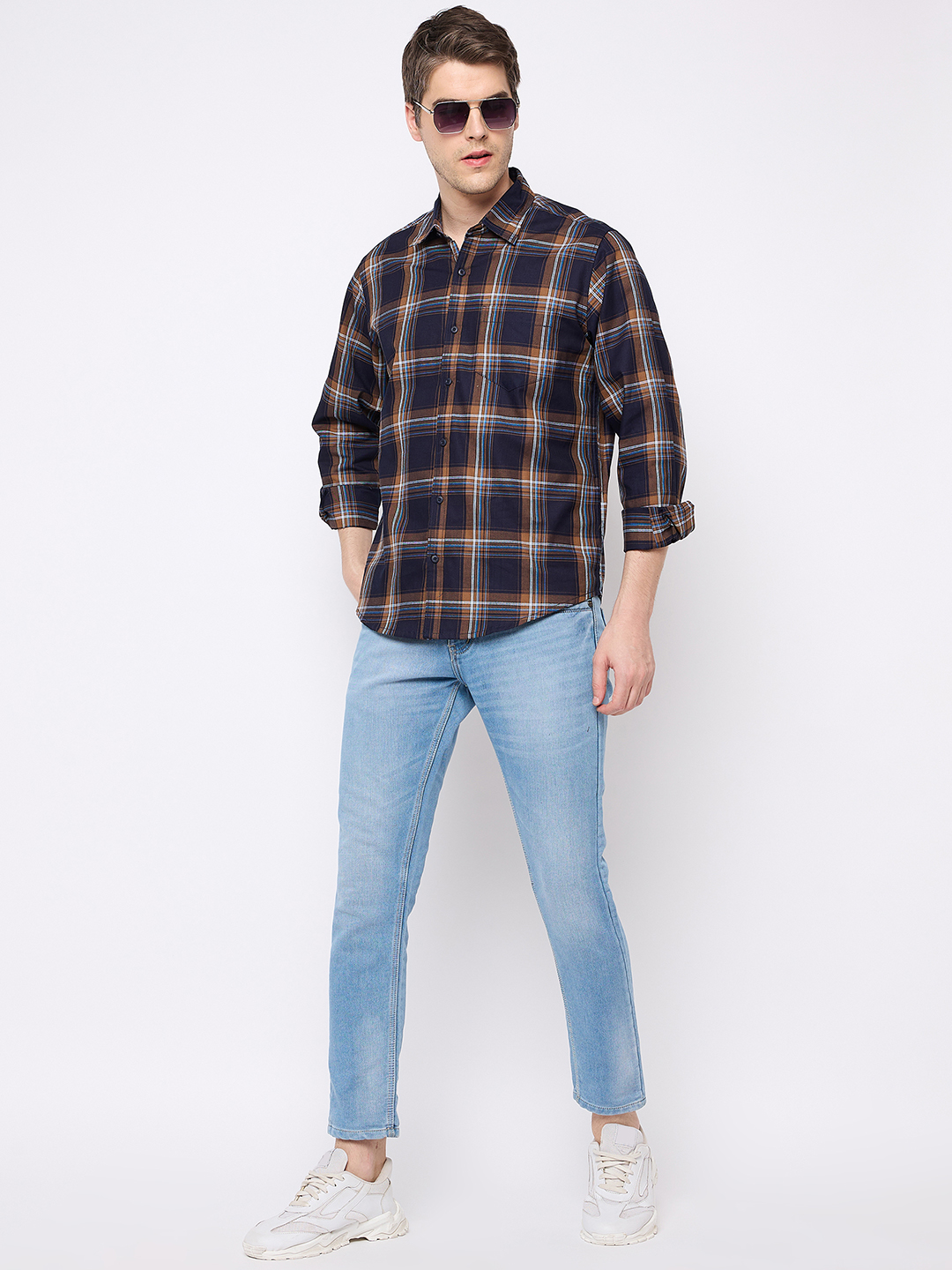 Stripped Blue Pin Half Sleeves Shirt 1102
