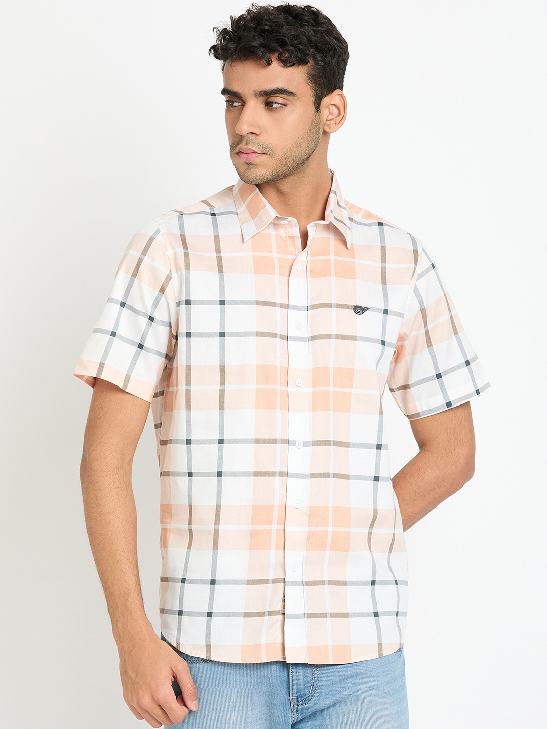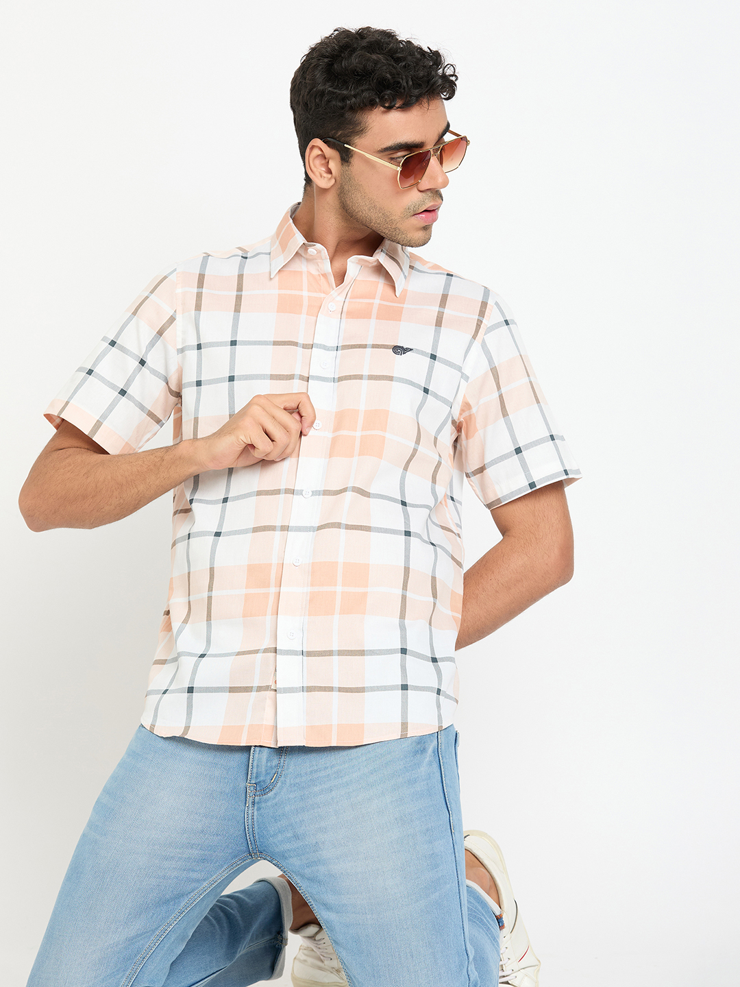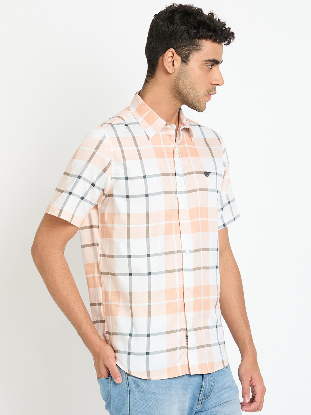 Men Floral Printed Peach Spread Collar Casual Shirt