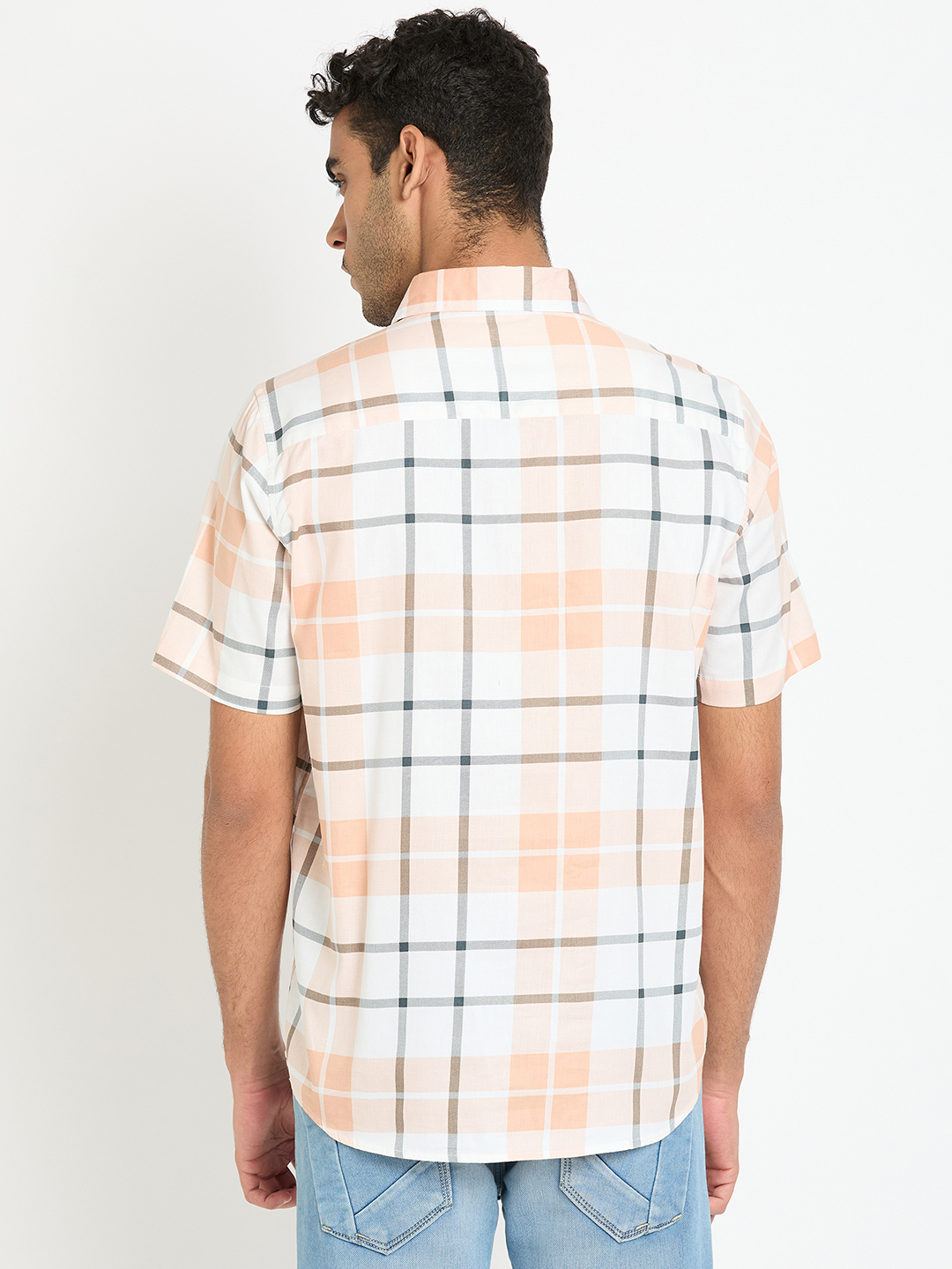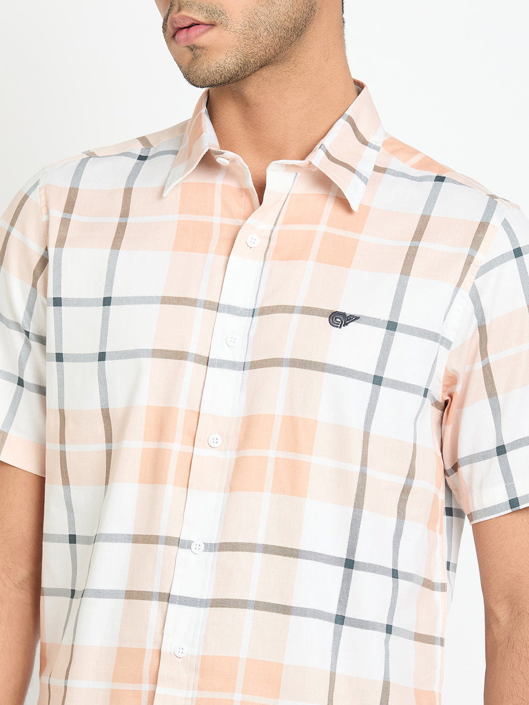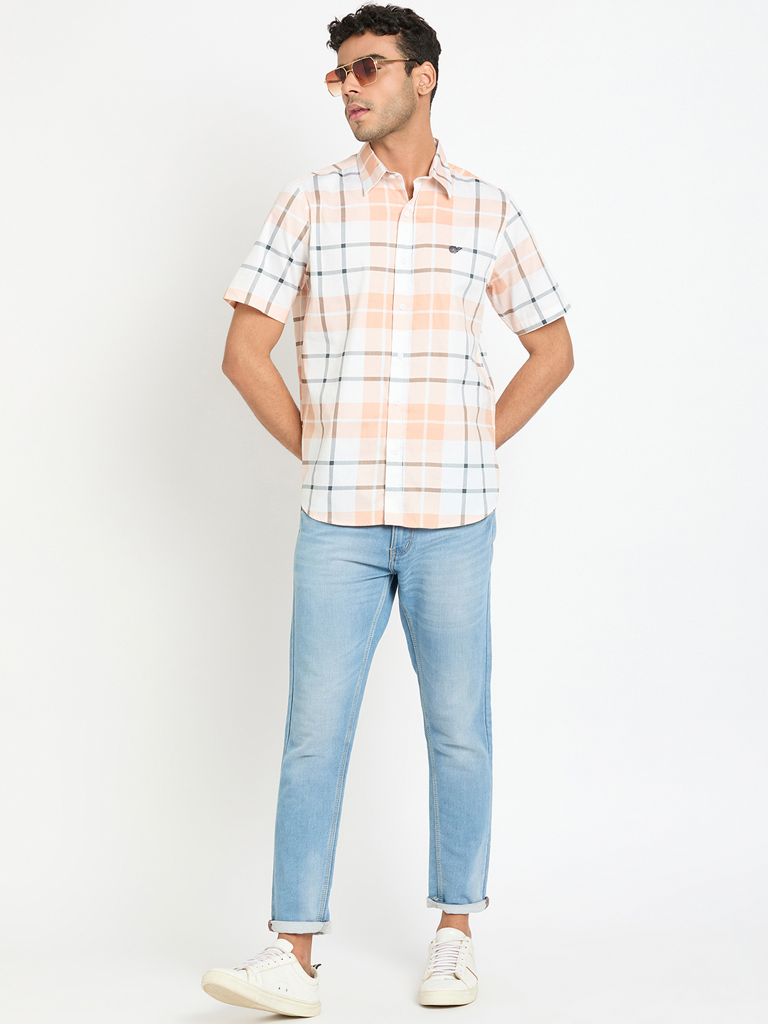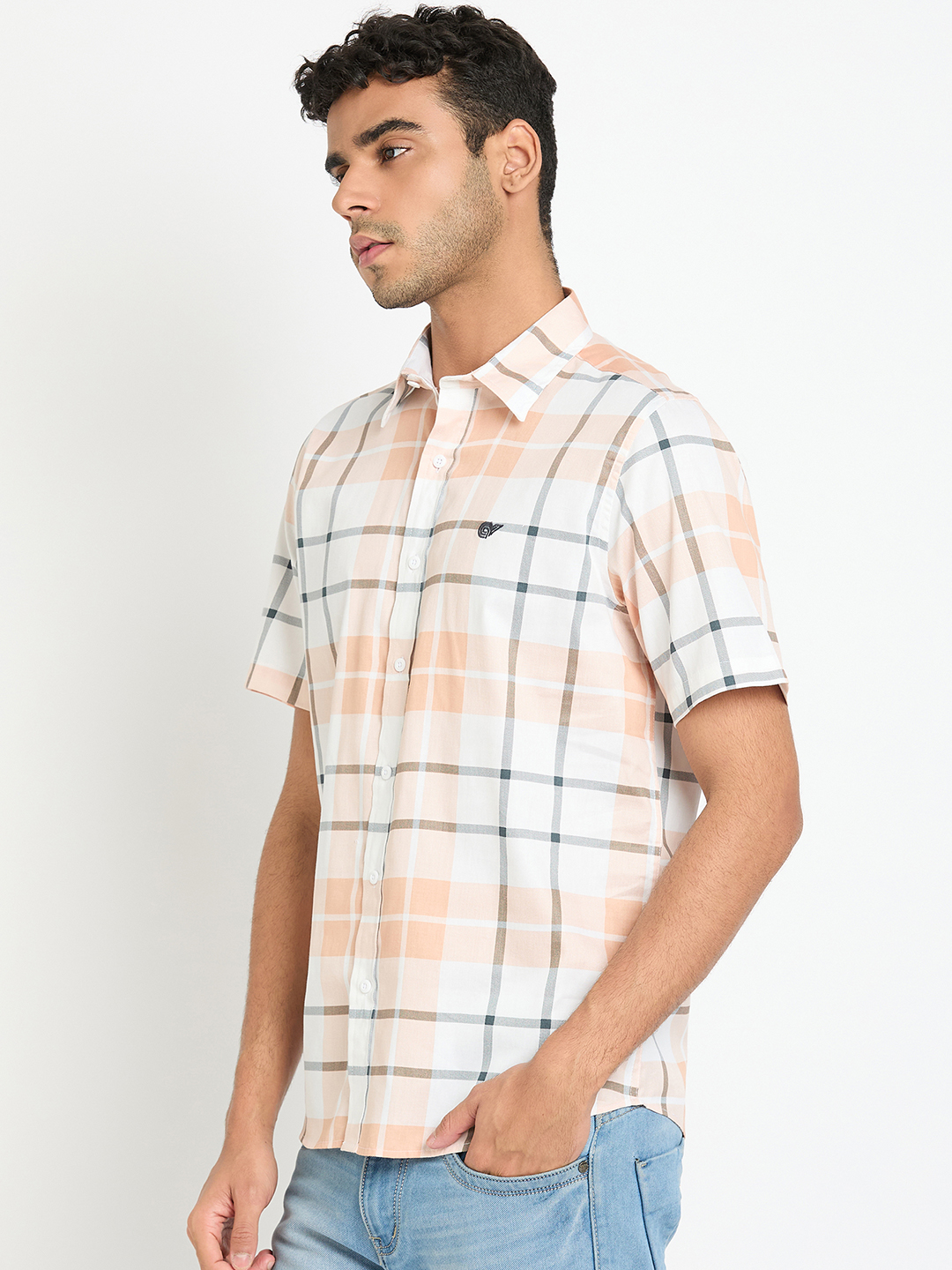 Men Floral Printed Peach Spread Collar Casual Shirt