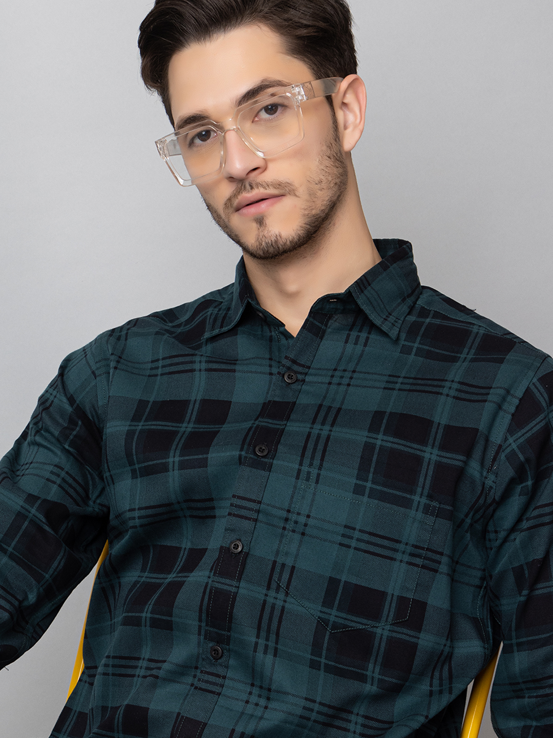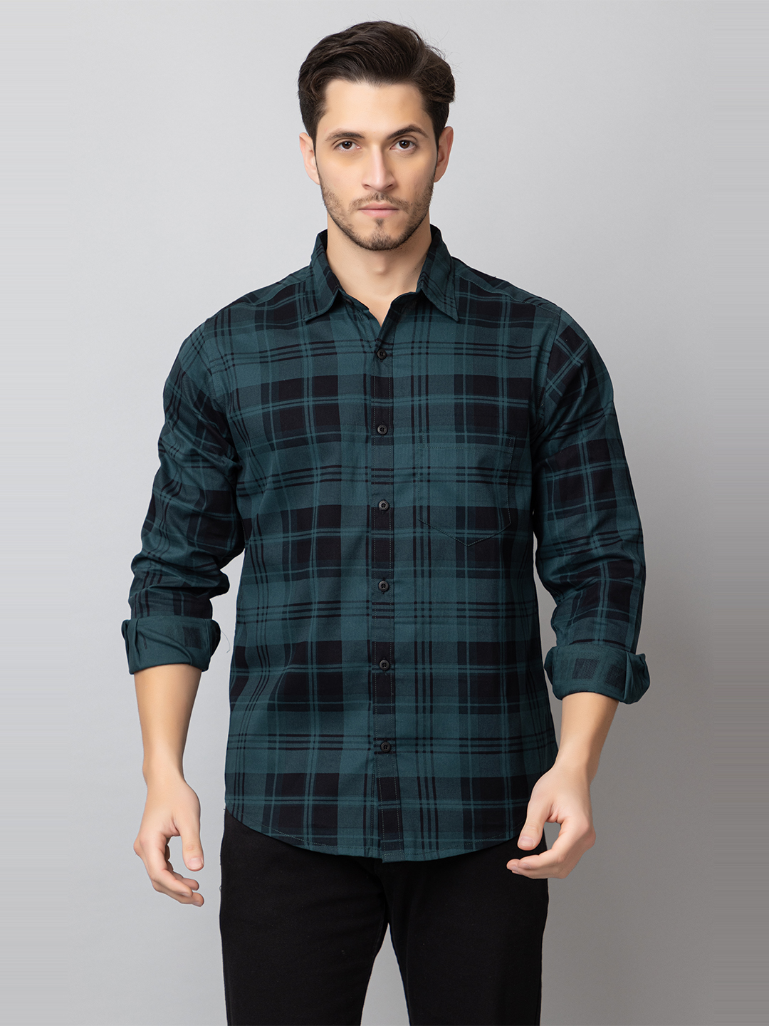Men Slim Fit Vertical Striped Spread Collar Casual Shirt