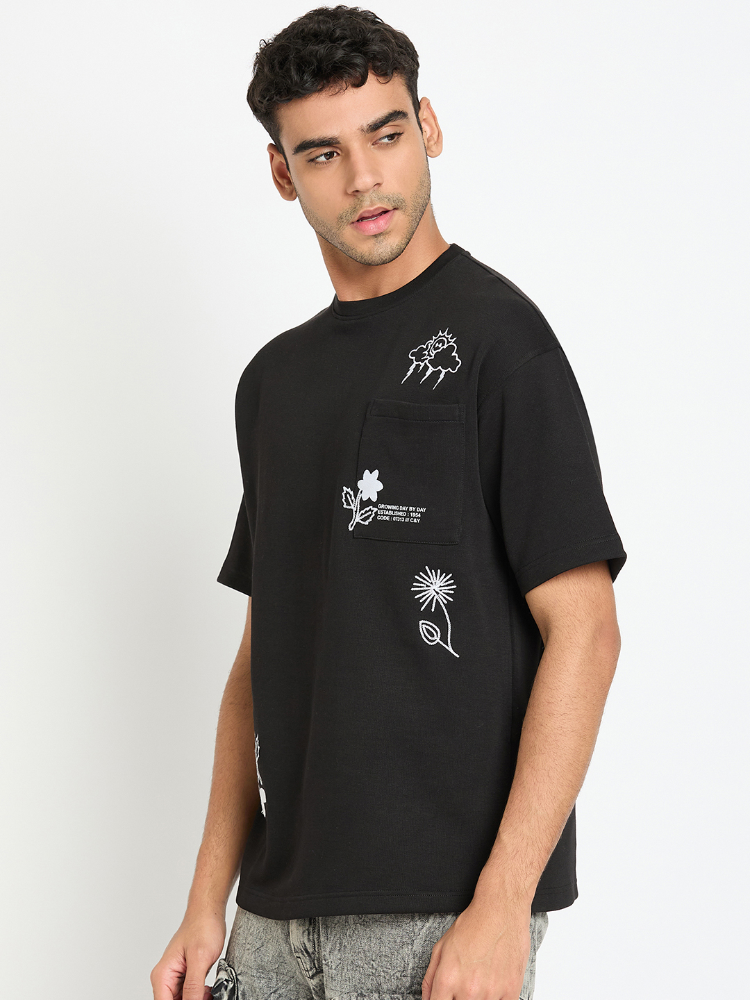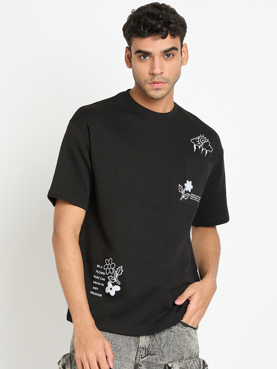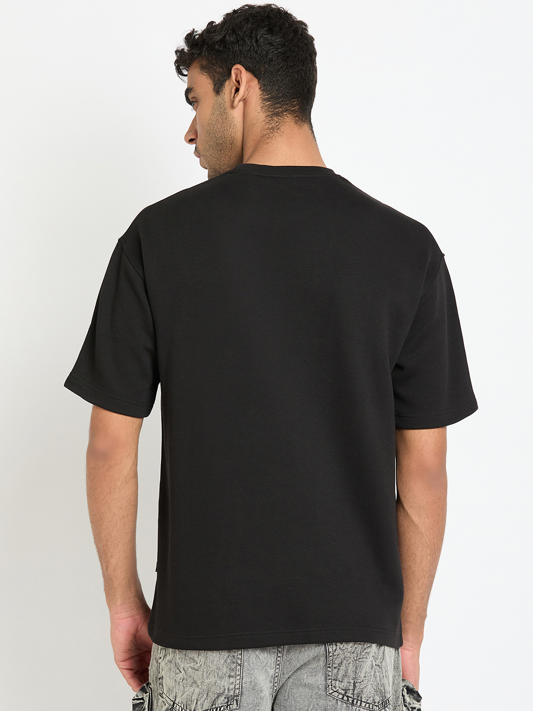 Black Printed Round Neck Plus Size T-Shirt 8114