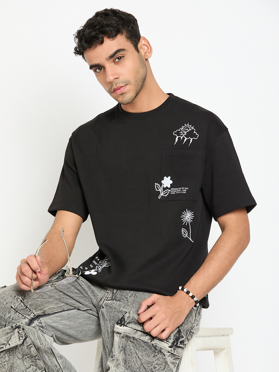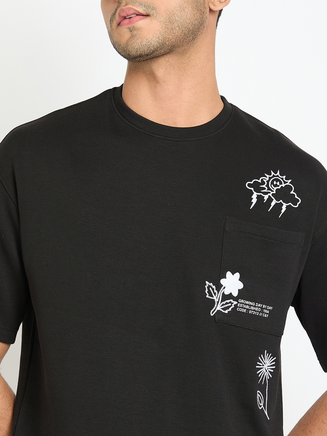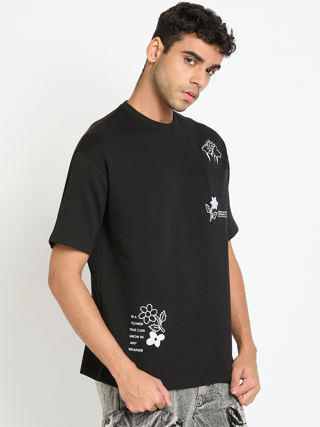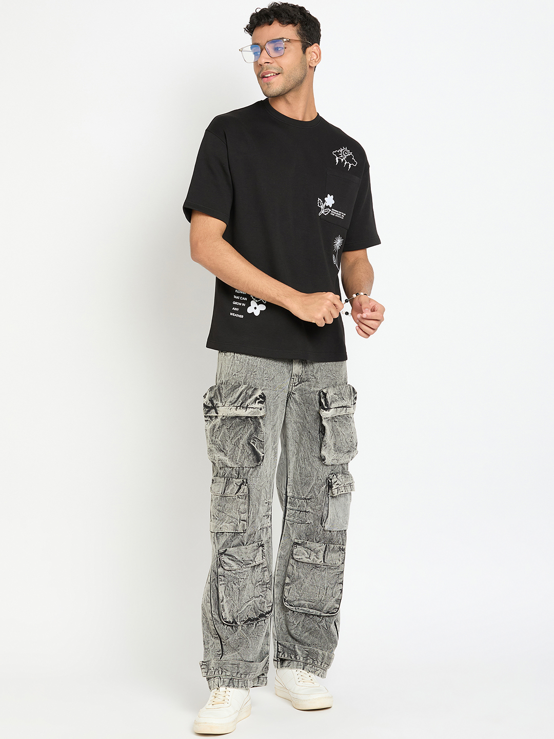 Black Printed Round Neck Plus Size T-Shirt 8114