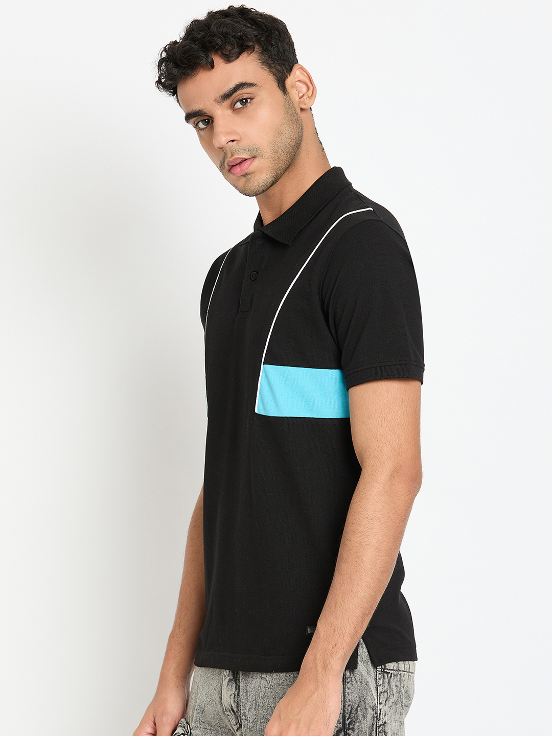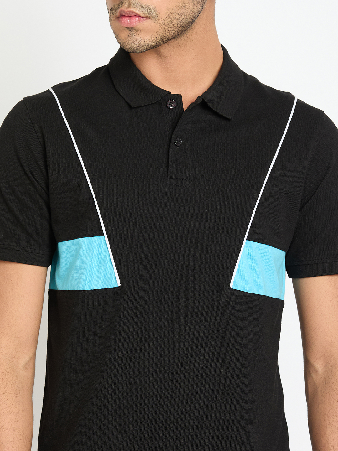 Men Color Blocked Navy Polo T Shirt