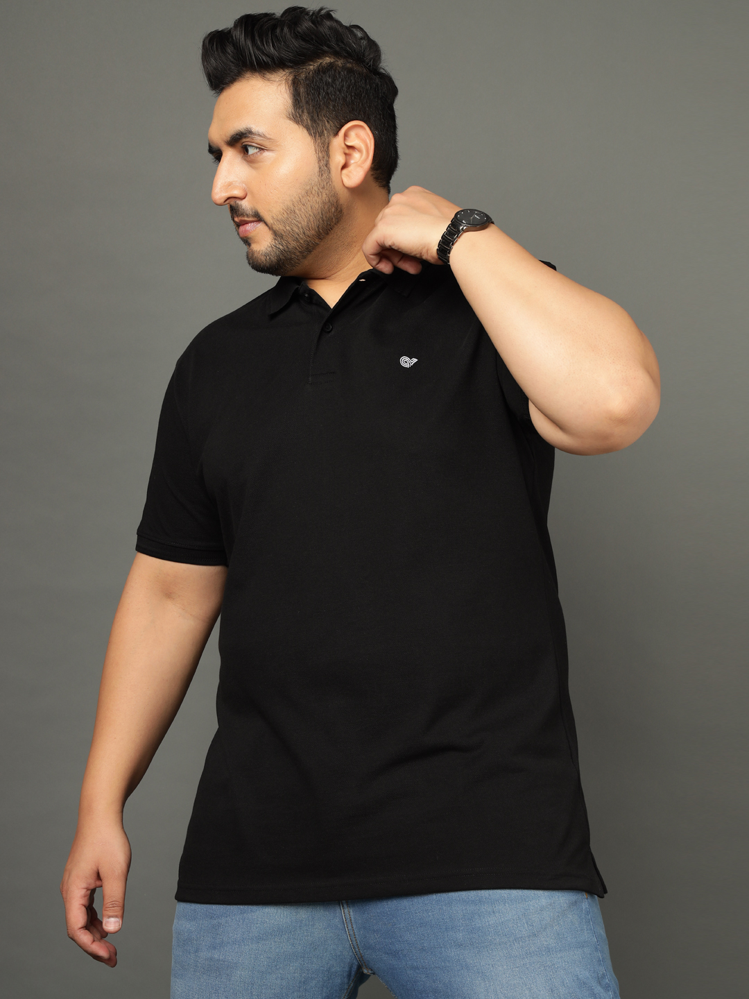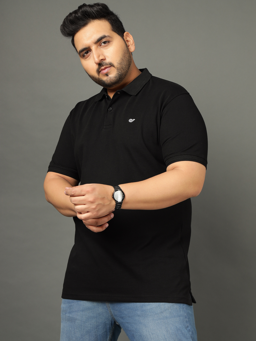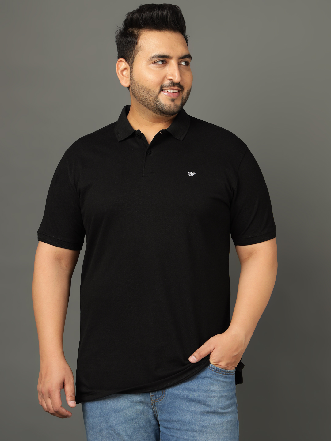 Plus Size Black Polo T-Shirt 2805