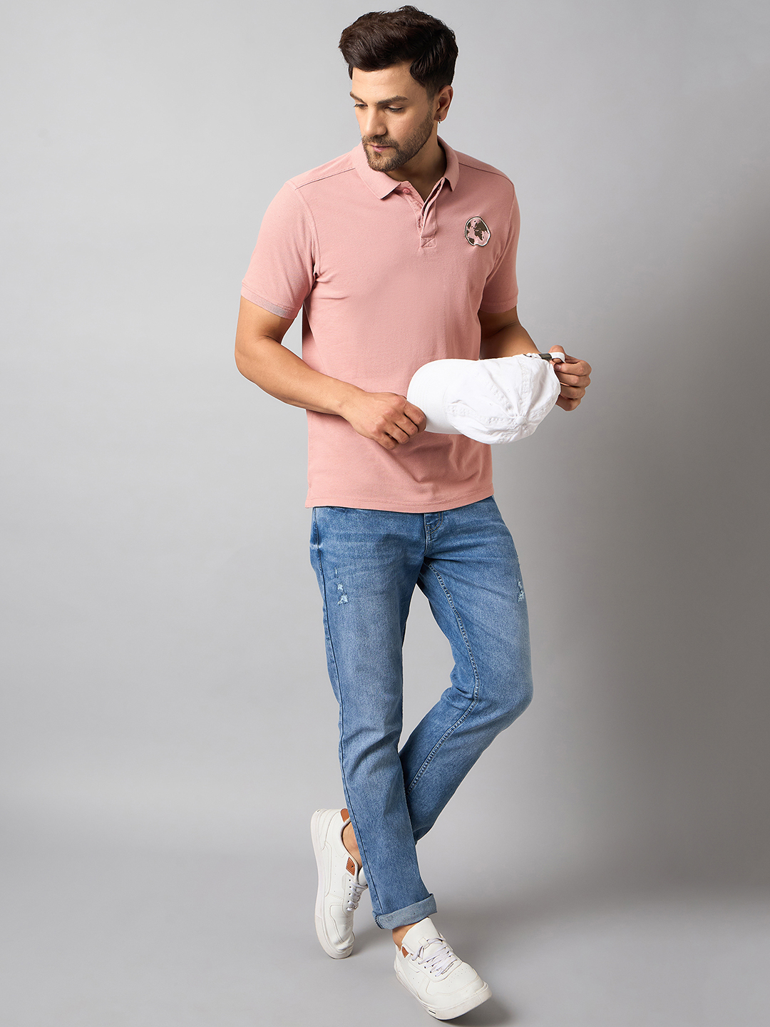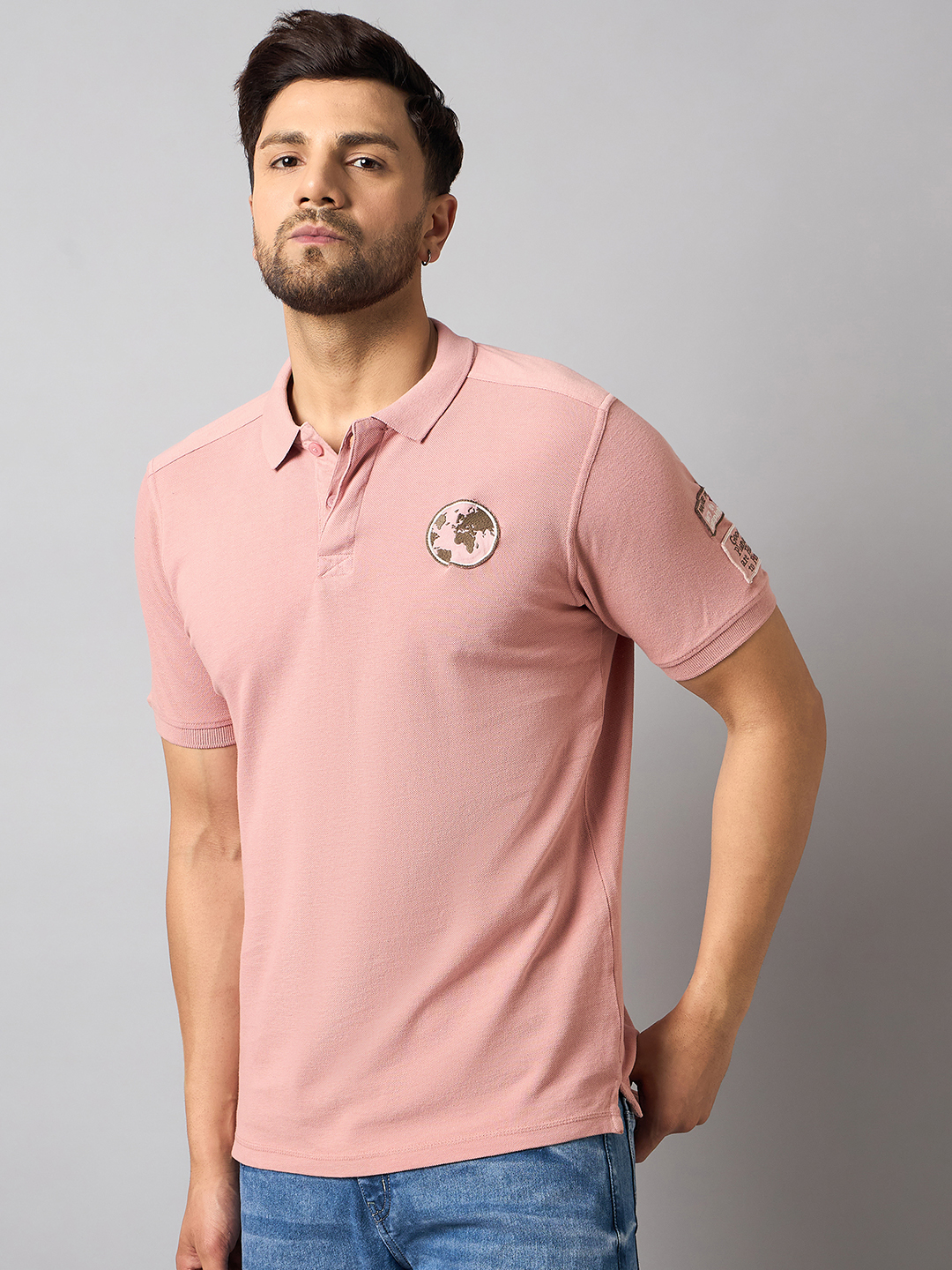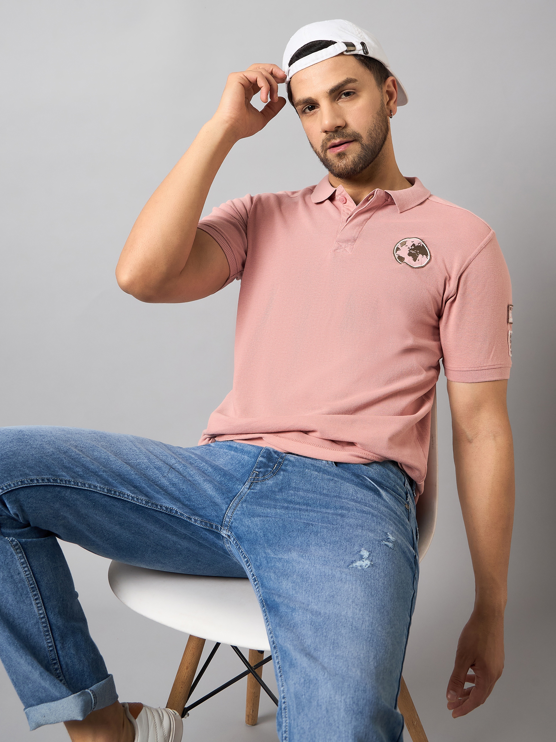 Classic Light Pink Low Collar Polo T Shirt