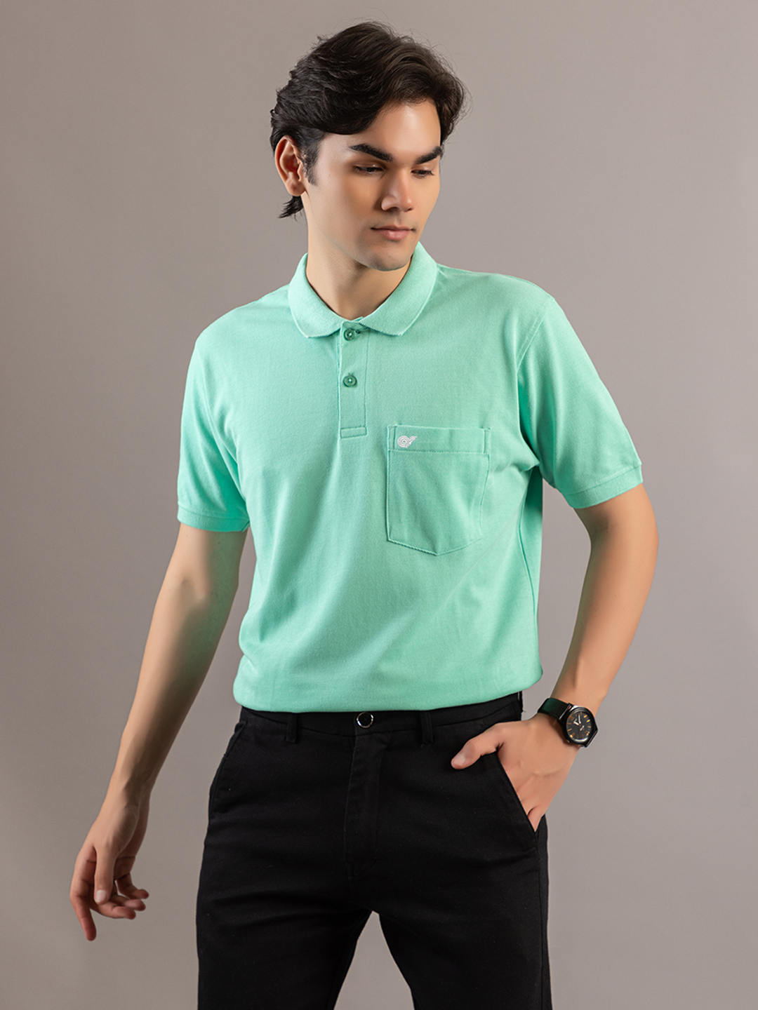 Classic Ocean Green Pocketed Polo T Shirt