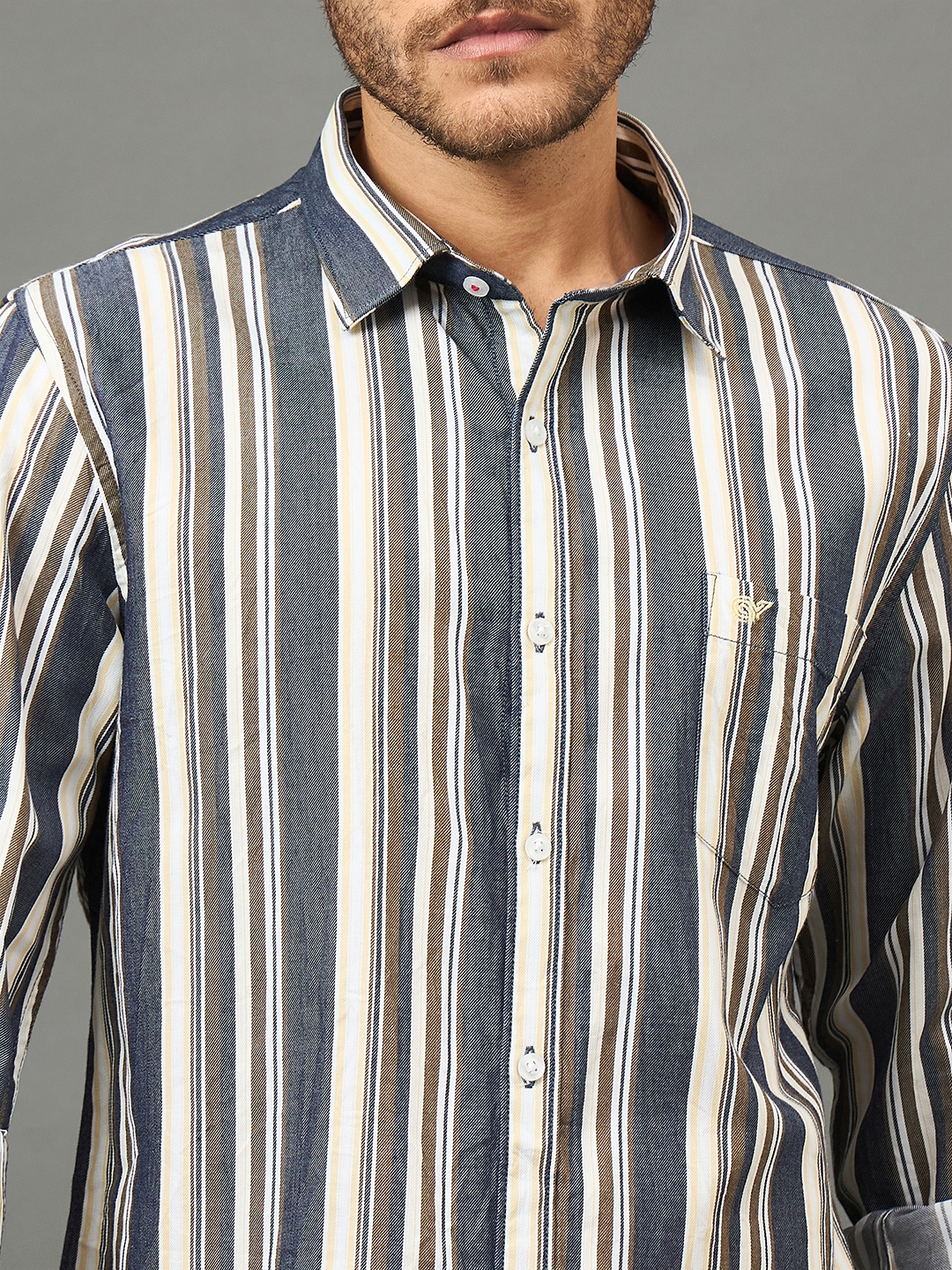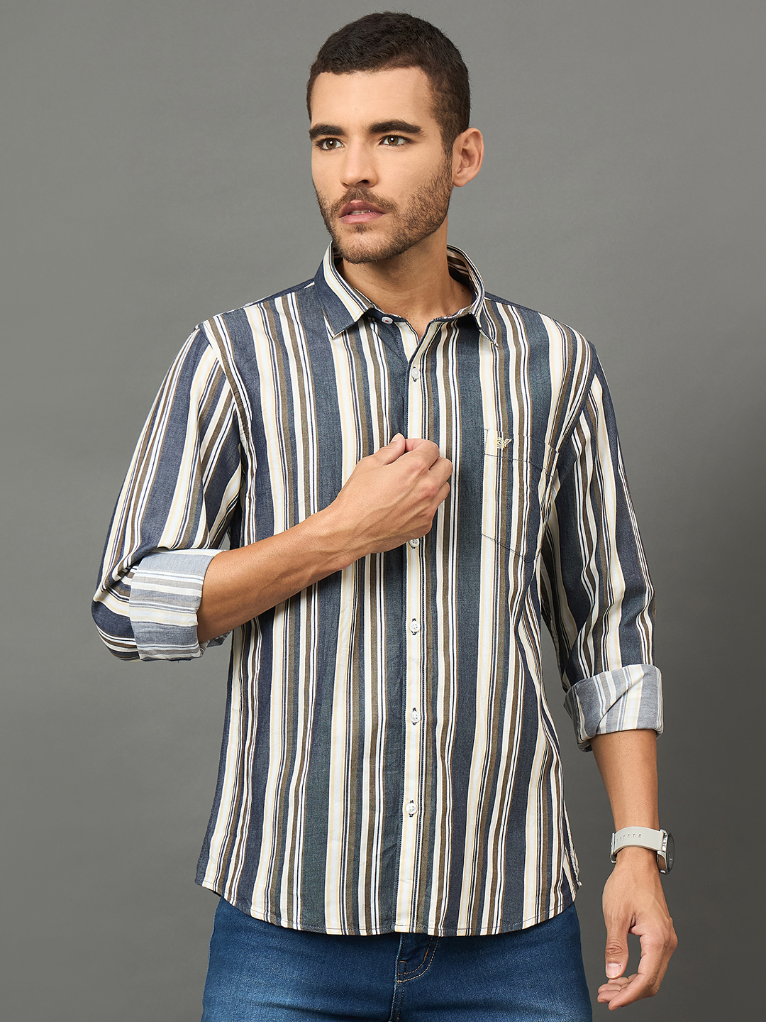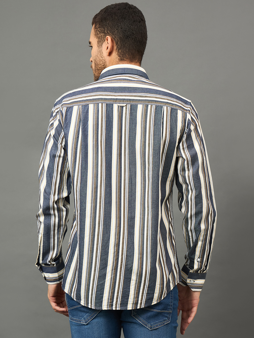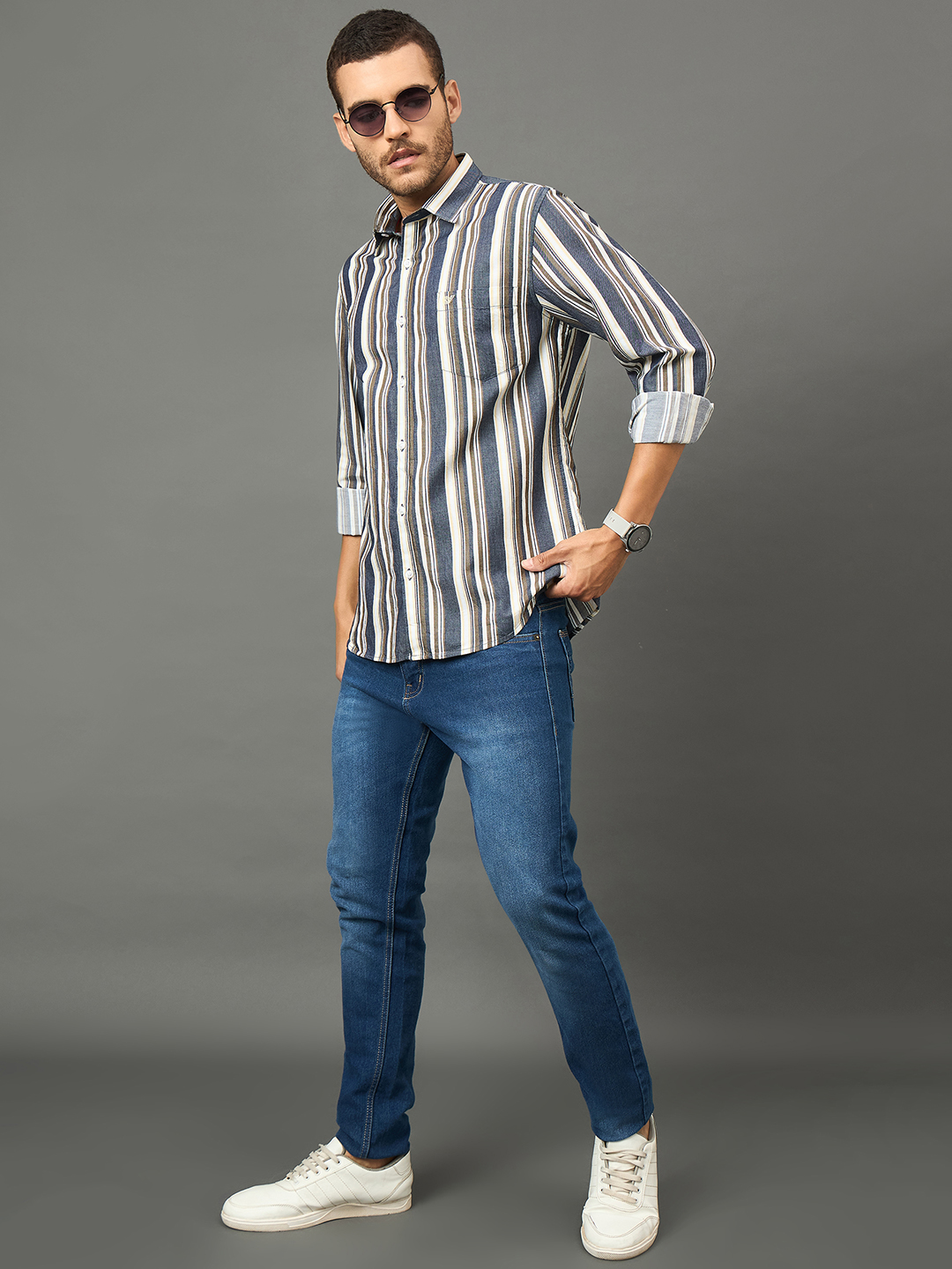 Men Slim Fit Vertical Striped Spread Collar Casual Shirt