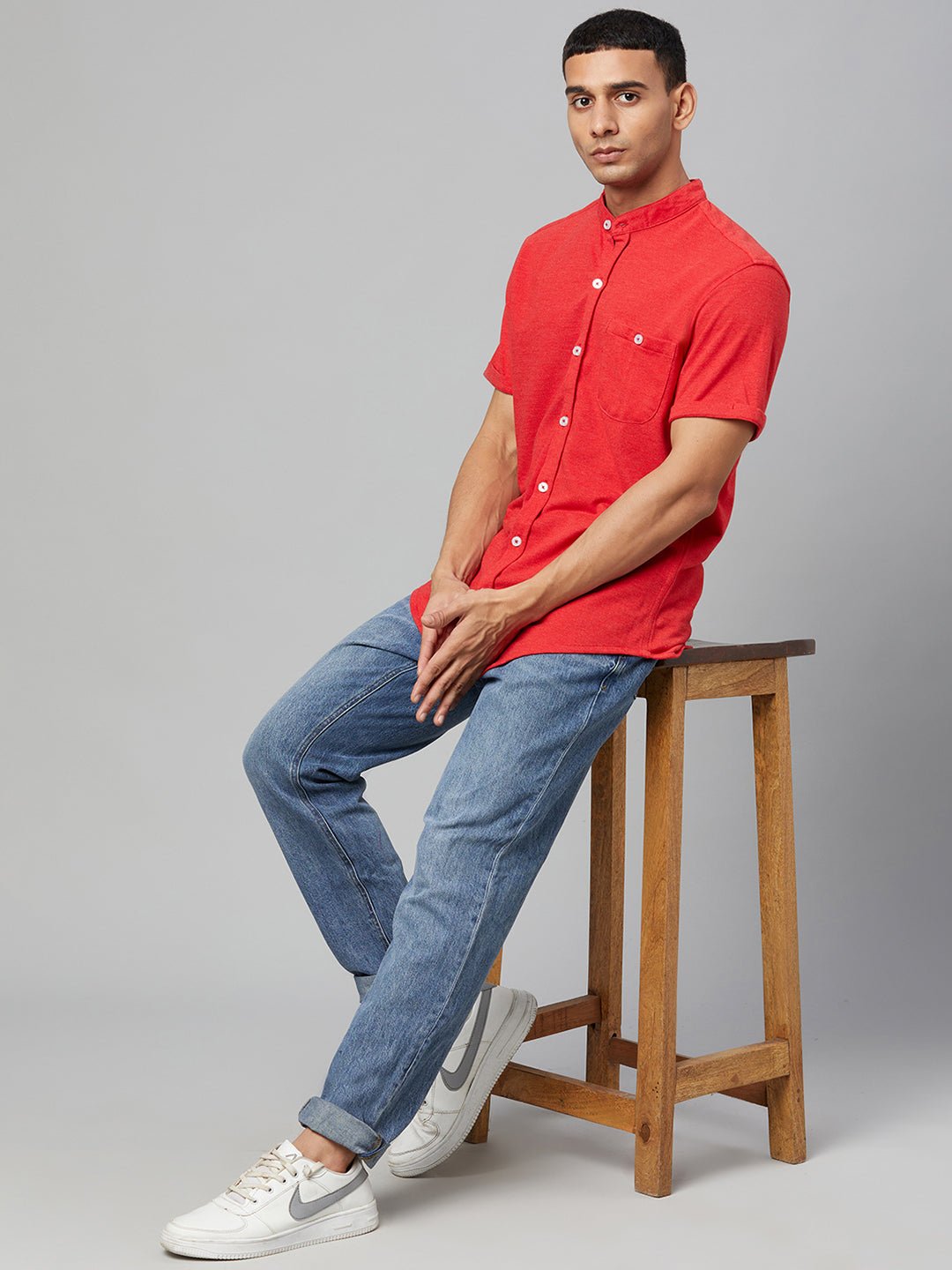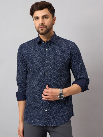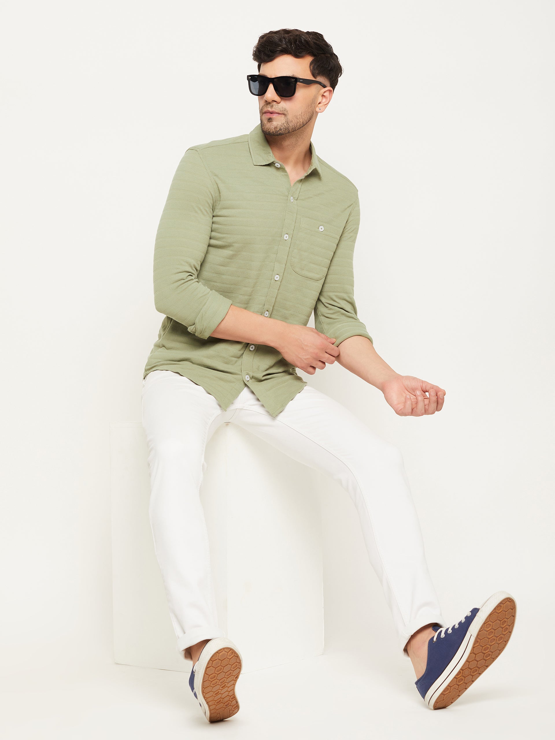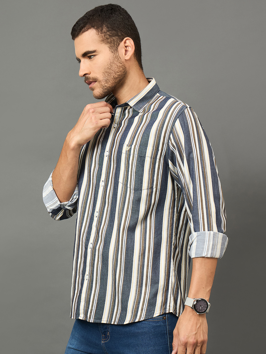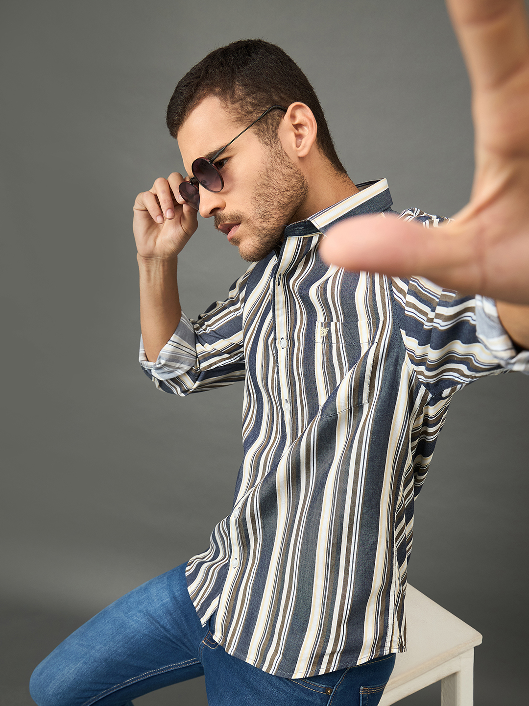 Men Slim Fit Vertical Striped Spread Collar Casual Shirt