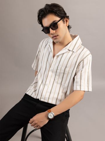 Stylish Striped Off White Brownish Half Sleeve Shirt