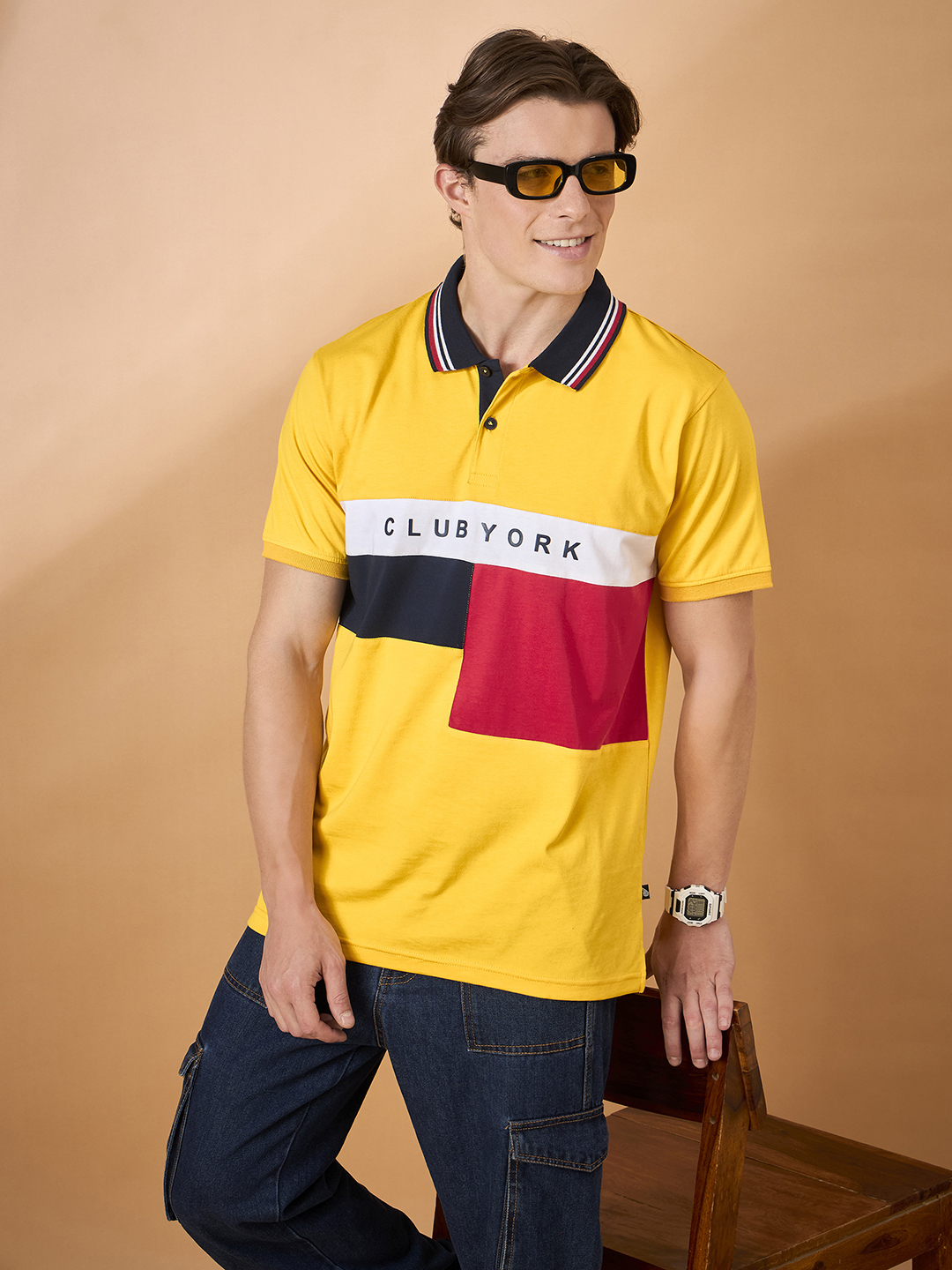 Club York Blocks Classic Yellow Polo T Shirt