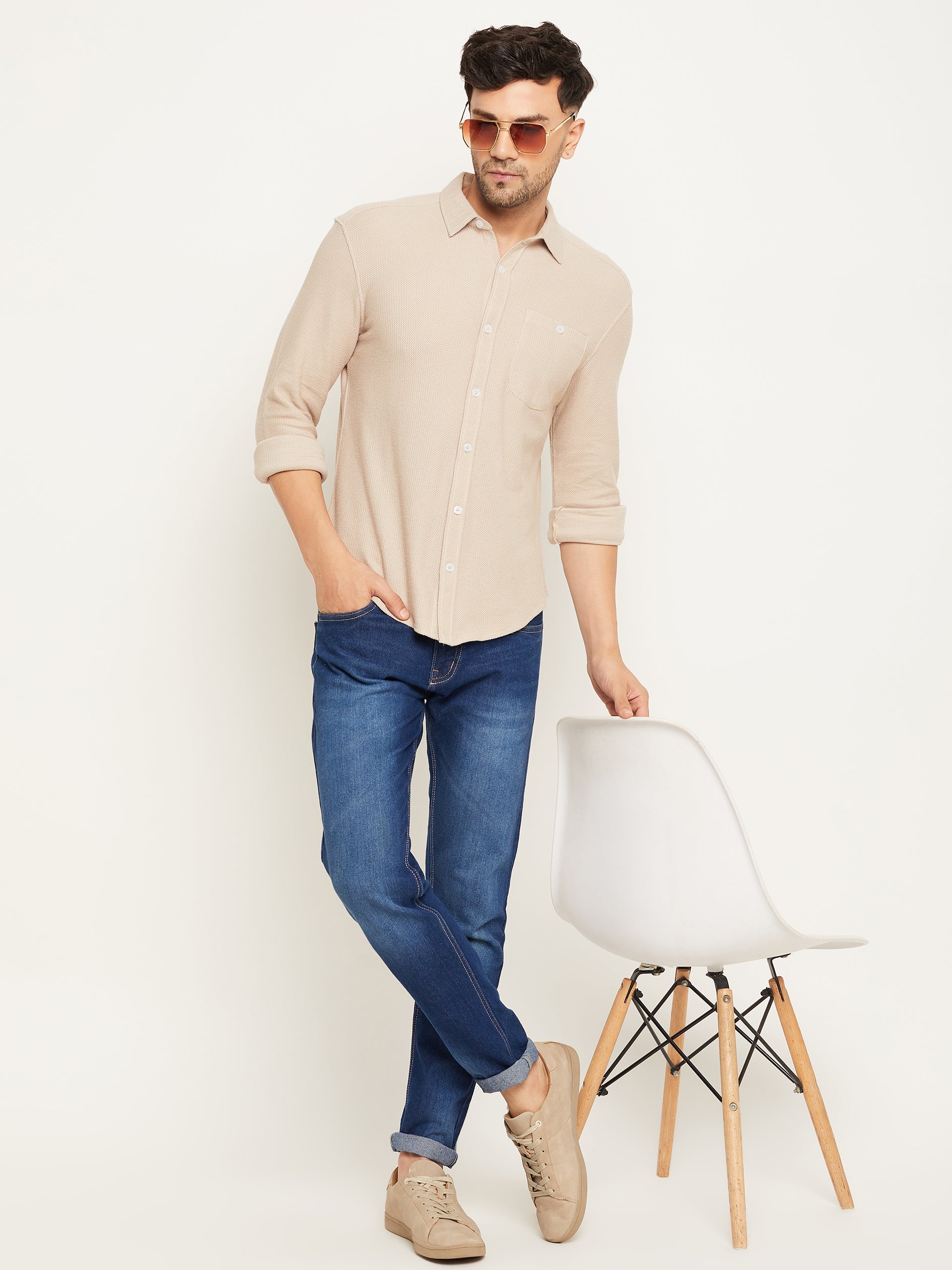 Club York Men Beige Solid Full Sleeve Shirt Sm239 9903