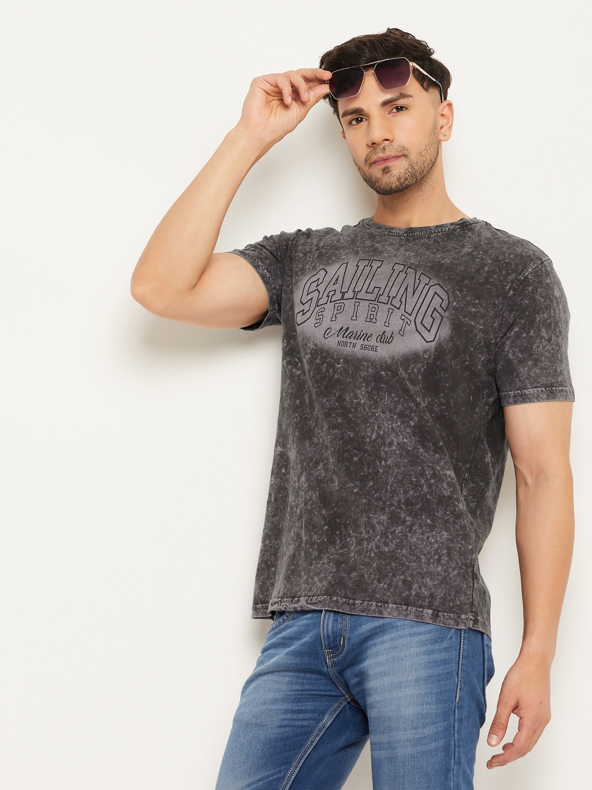 Grey Printed Half Sleeve Round Neck T-Shirt 5668