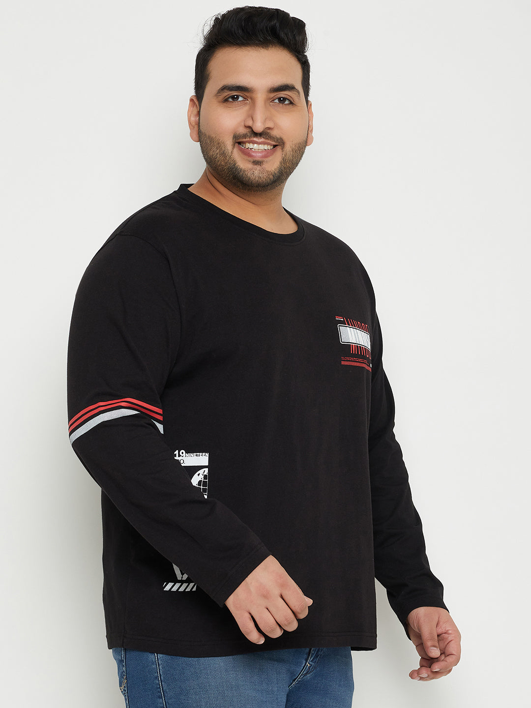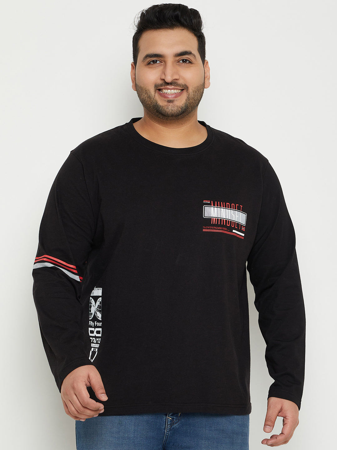 Club York Men Black Printed Full Sleeve Round Neck Plus Size T Shirt Mpw536xl 8824