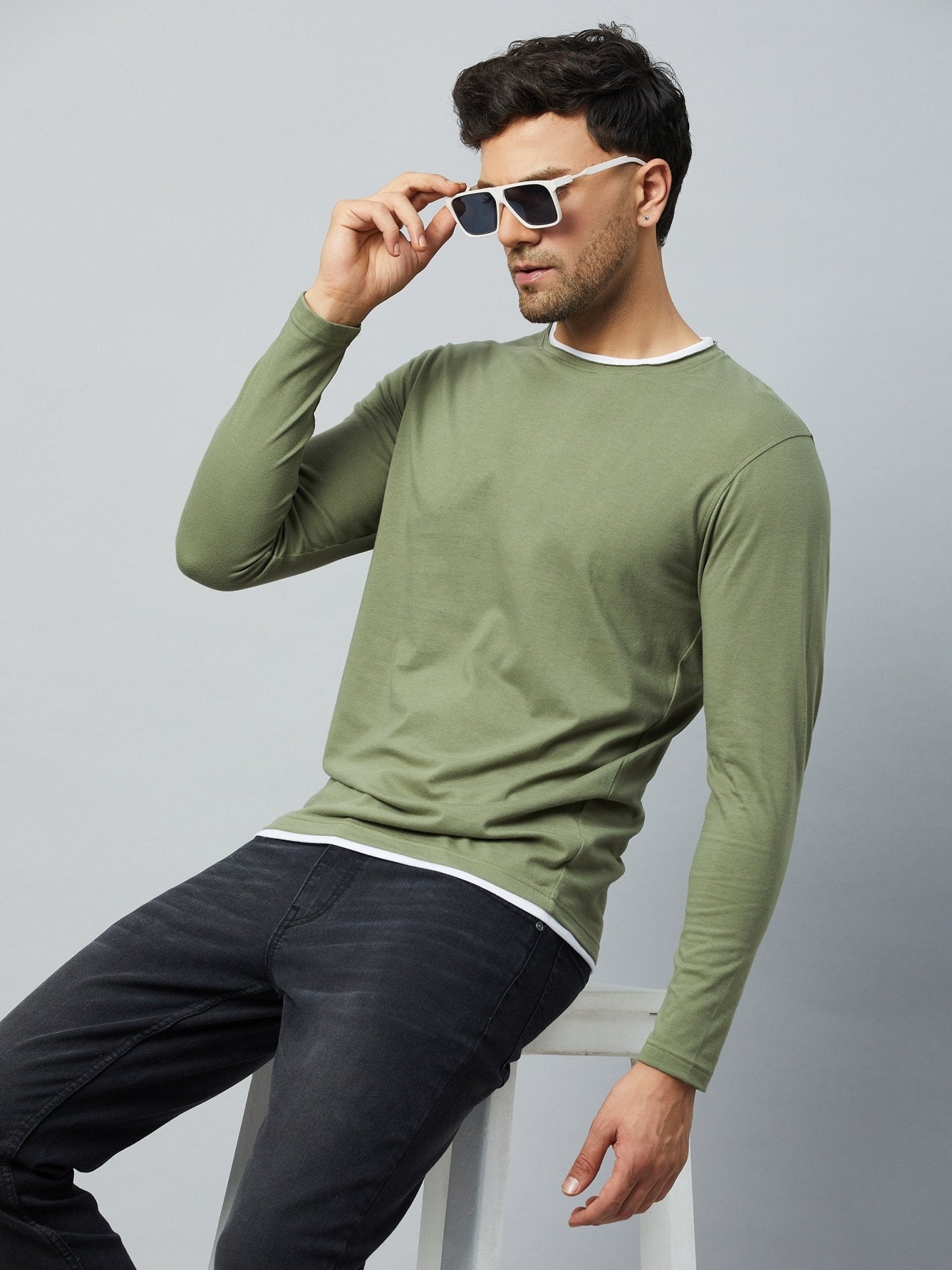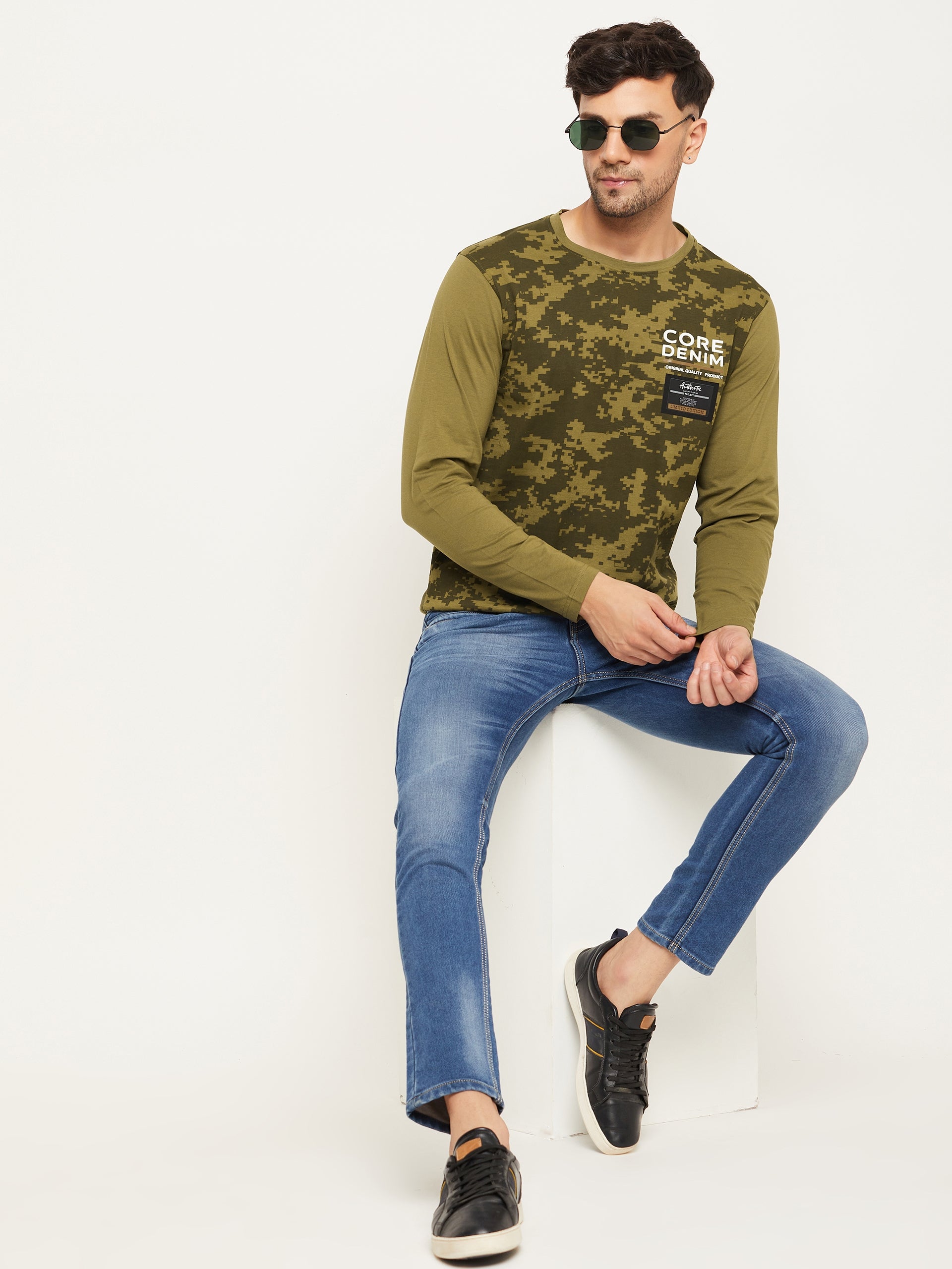 Olive Green Printed Round Neck Plus Size T-Shirt 5450