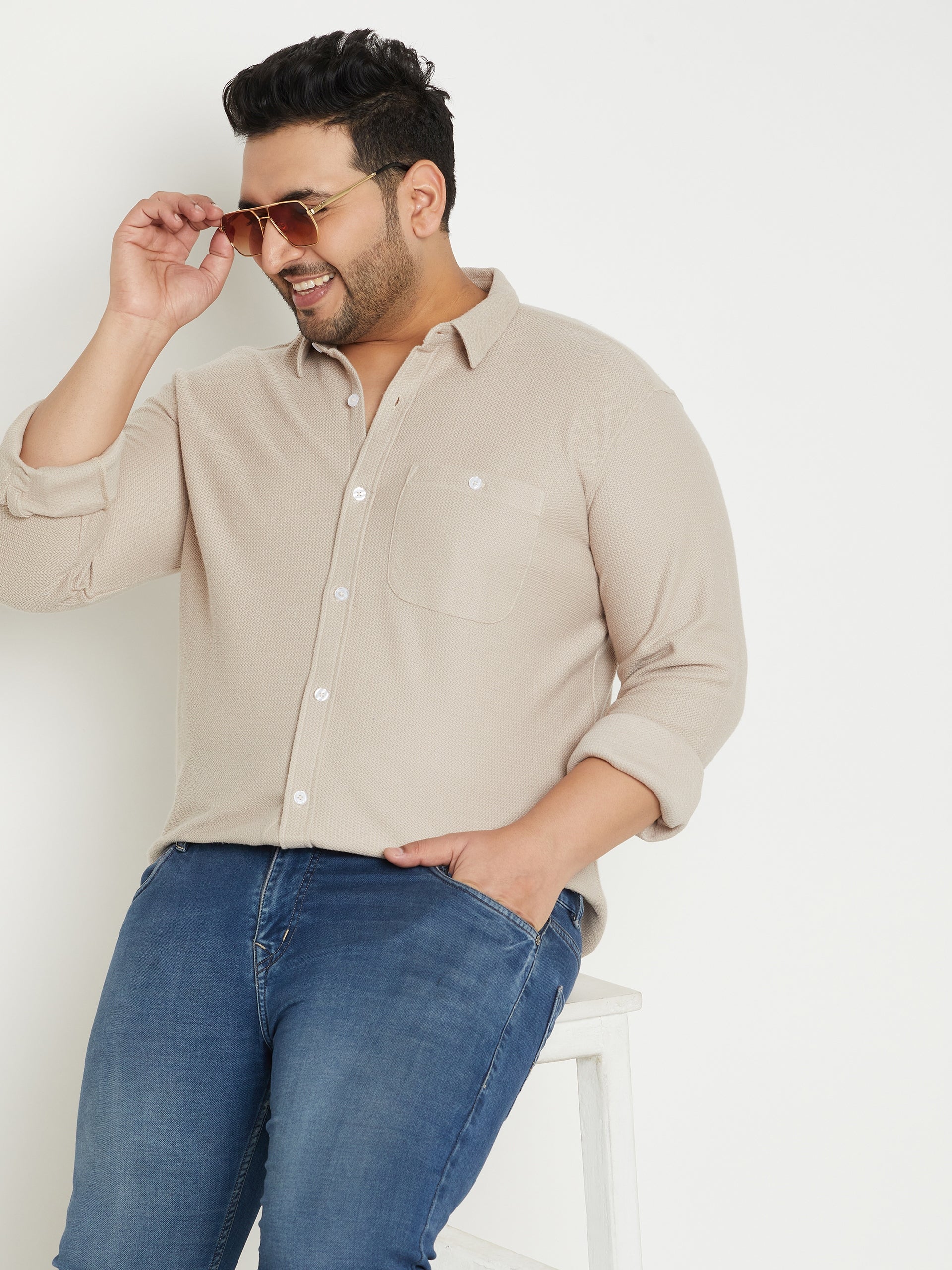 Beige Solid Plus Size Shirt 3920
